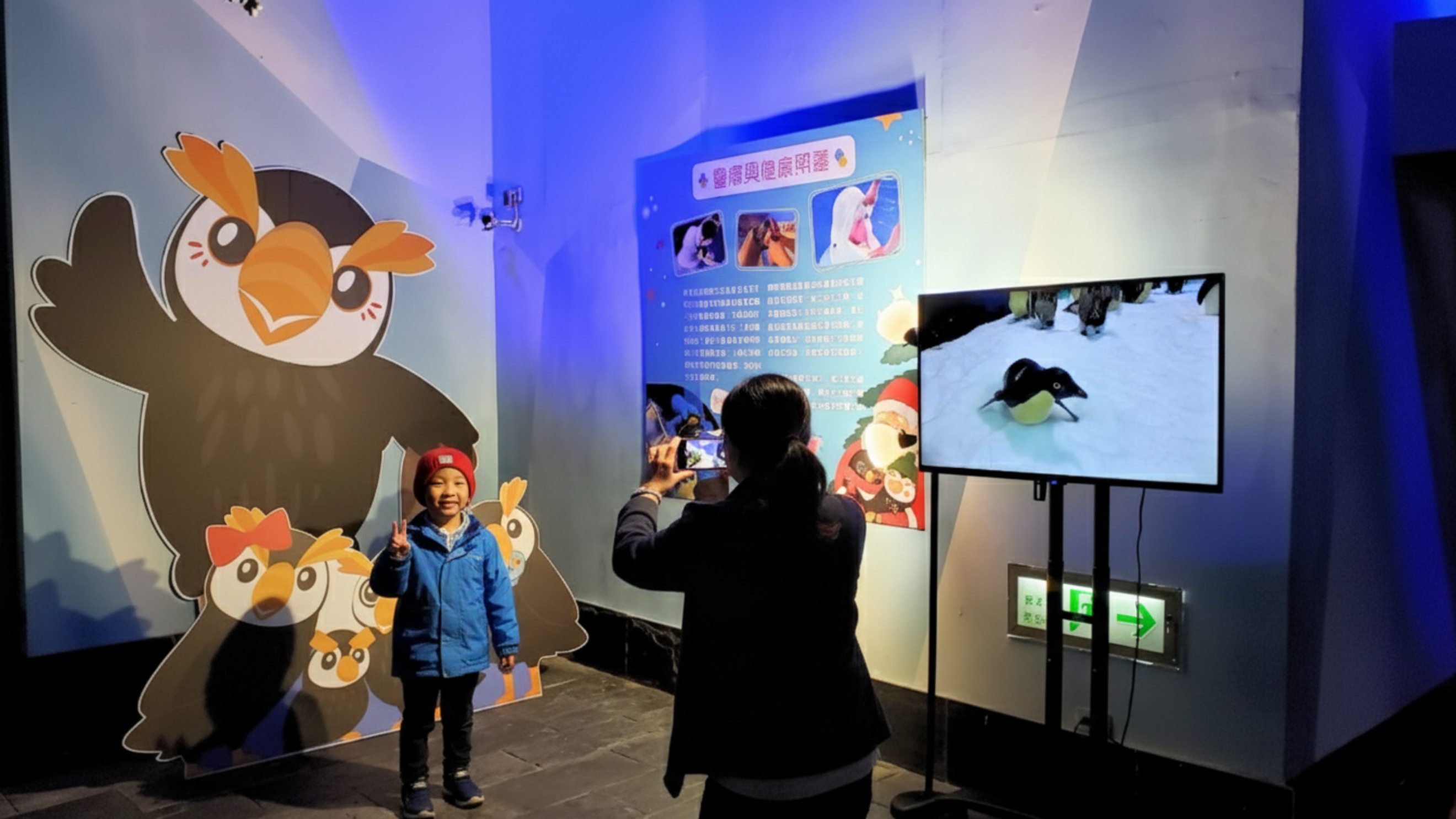 圖說:館內世界水域館極地區佈置「溫馨雪屋打卡牆」供民眾拍照。(圖片來源:屏東海生館提供)