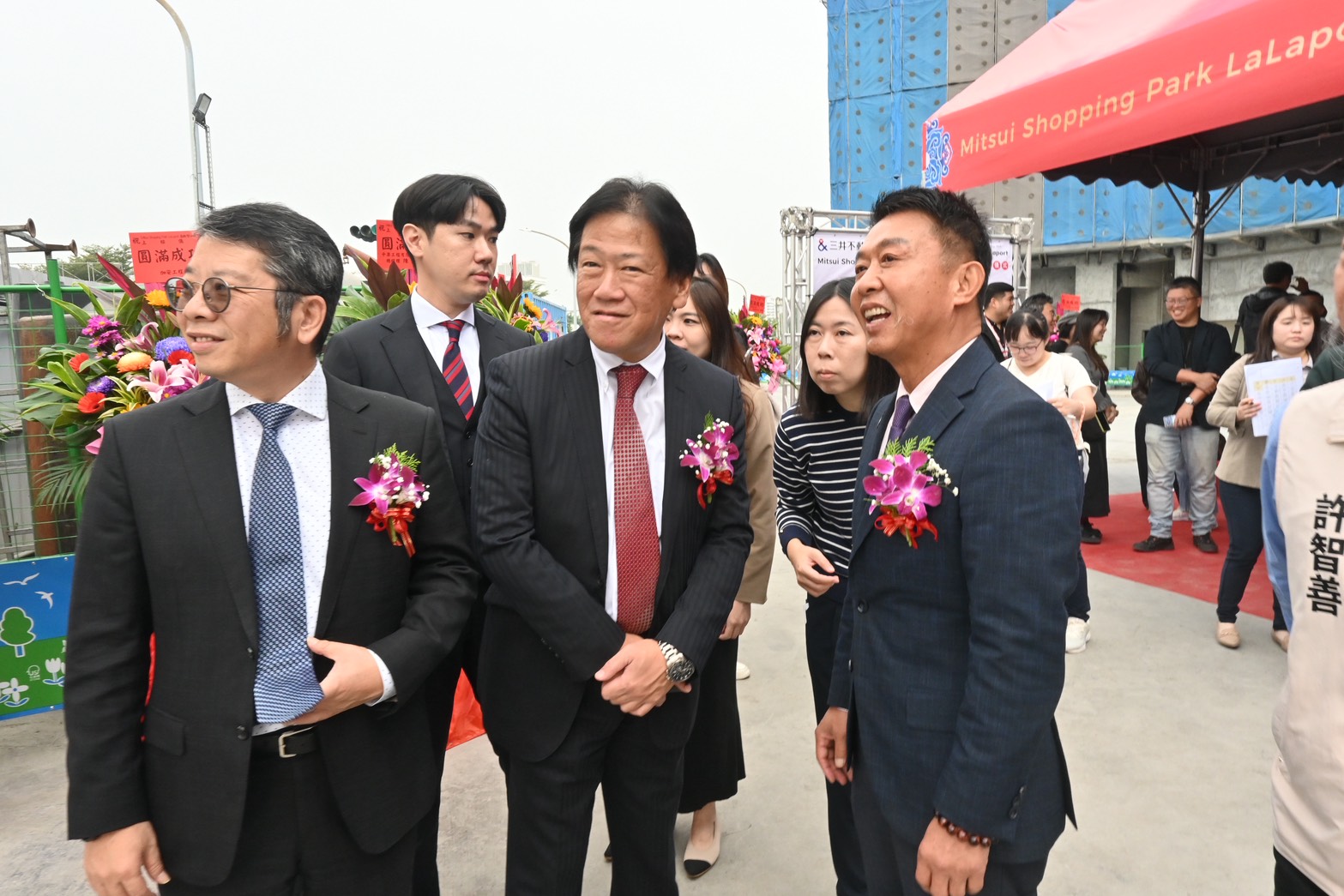 圖說:各界貴賓見證三井Shopping Park LaLaport工程上樑典禮。(圖片來源:許智傑競總提供)