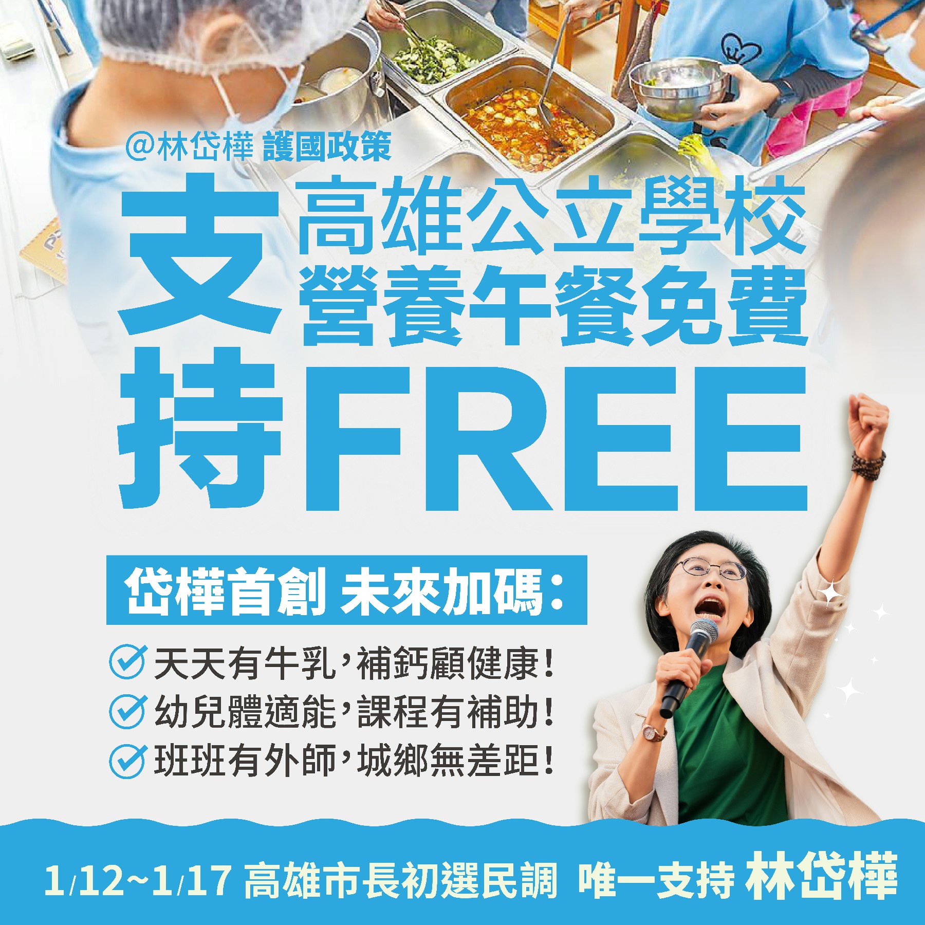 ↑圖說:林岱樺支持高雄午餐免費政策,並在既有政策基礎上再加碼。(圖片來源:林岱樺辦公室提供)