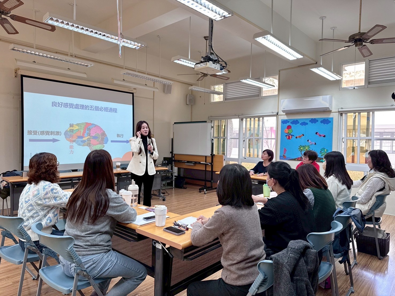 ↑圖說:林妮燕教授帶領團員理解社會情緒學習(SEL)對幼兒適應與學習的重要性。(圖片來源:嘉義市教育處提供)