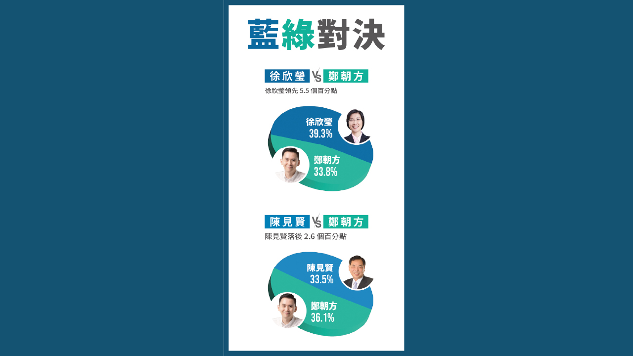 更貼近實戰的三人同場競逐情境,同樣值得關注。民調顯示,在徐欣瑩、陳見賢與鄭朝方三人之中,徐以32.0%支持度居於首位,鄭朝方30.7%緊追其後,陳見賢則為17.5%。分析指出,若藍營未能完成整合,恐將出現選票分流、讓綠營坐收漁利的風險;然而在藍票尚未集中前,徐仍能守住第一,顯示其基本盤較為穩固,也具備一定吸納中間選民的能力。
