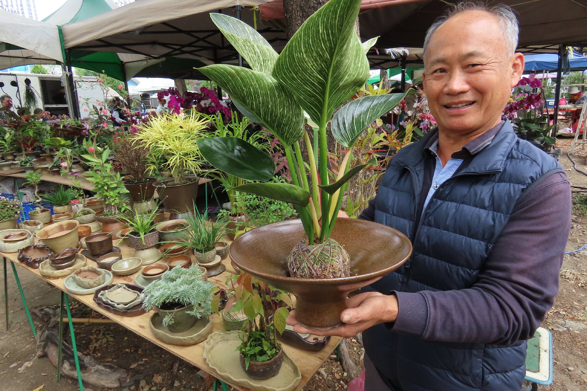 ↑圖說:知名陶藝家林文貴的陶作可搭配綠植成為生活化的陶藝品。(圖片來源:高雄市花卉協會提供)