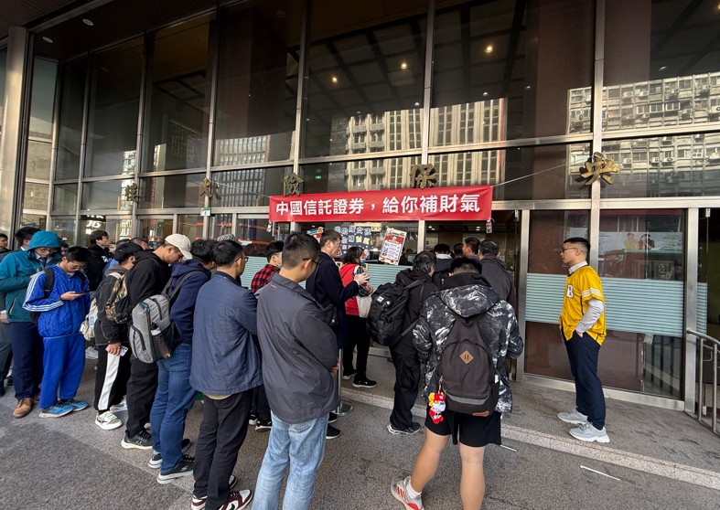台股昨天封關休市,但中國信託證券特別策劃「中國信託證券 x 啦啦隊女孩,給你補財氣!」活動,選在今(12)天中午12點,在北市四大營業據點同步舉辦,吸引不少上班族與粉絲排隊(如下圖,記者李錦奇攝影),等著領開運小物,並與啦啦隊女孩們合照。