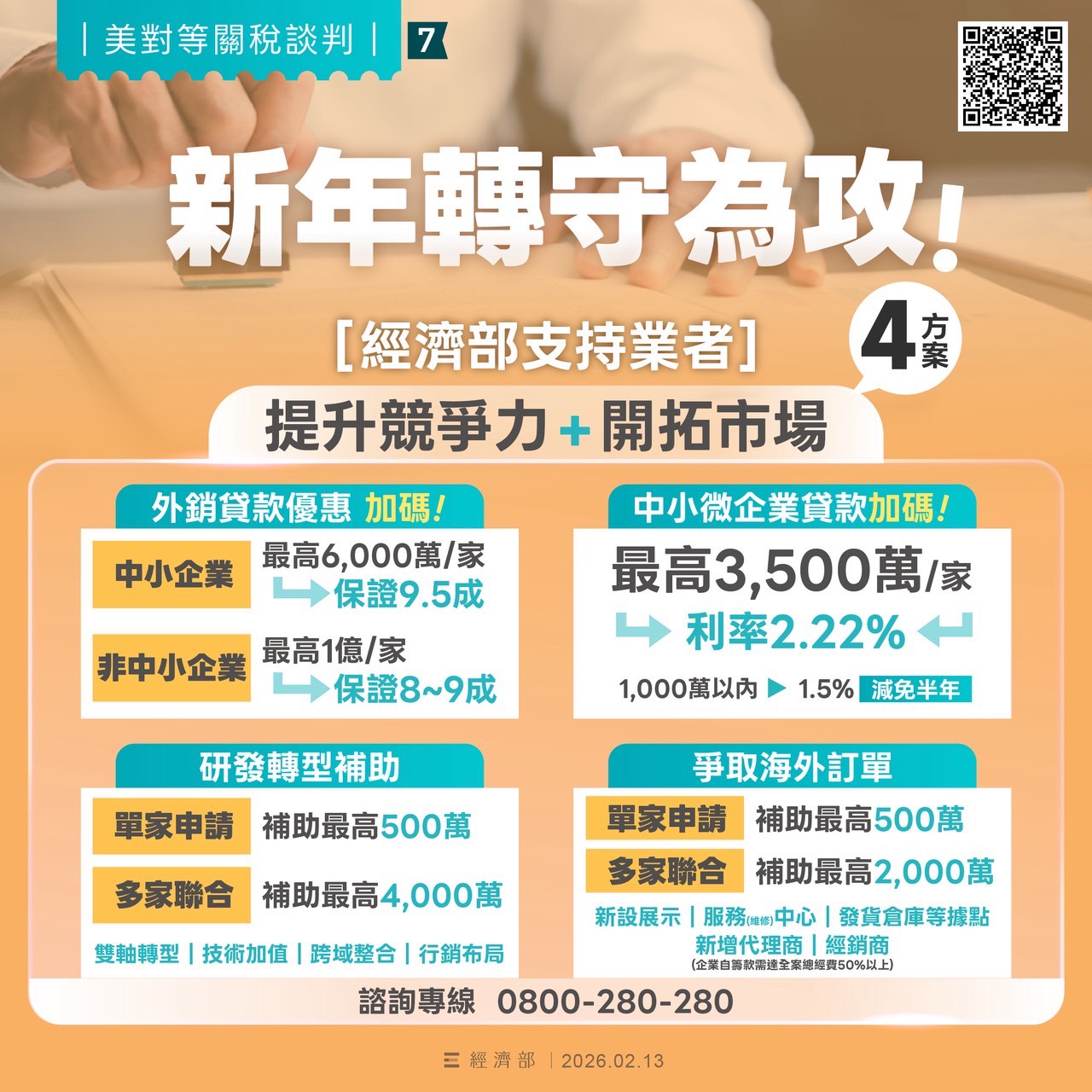 農業部則在既有預算外再增編預算,確保國產農產競爭優勢,同時開拓多元外銷市場、建立國際品牌,鞏固產業韌性。