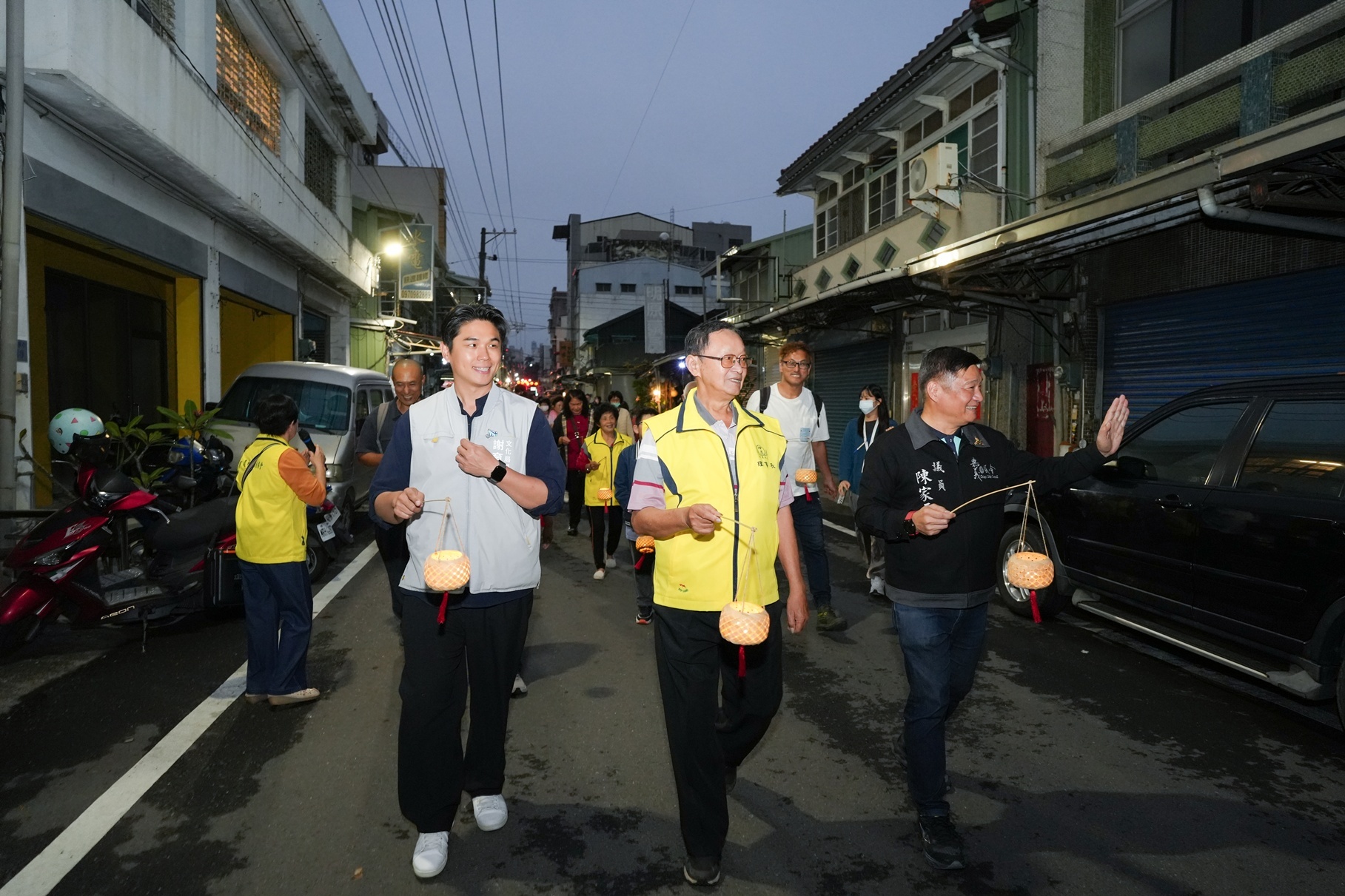 ↑圖說:嘉義市文化局長謝育哲提竹編燈籠沿巷弄漫步。(圖片來源:嘉義市文化局提供)