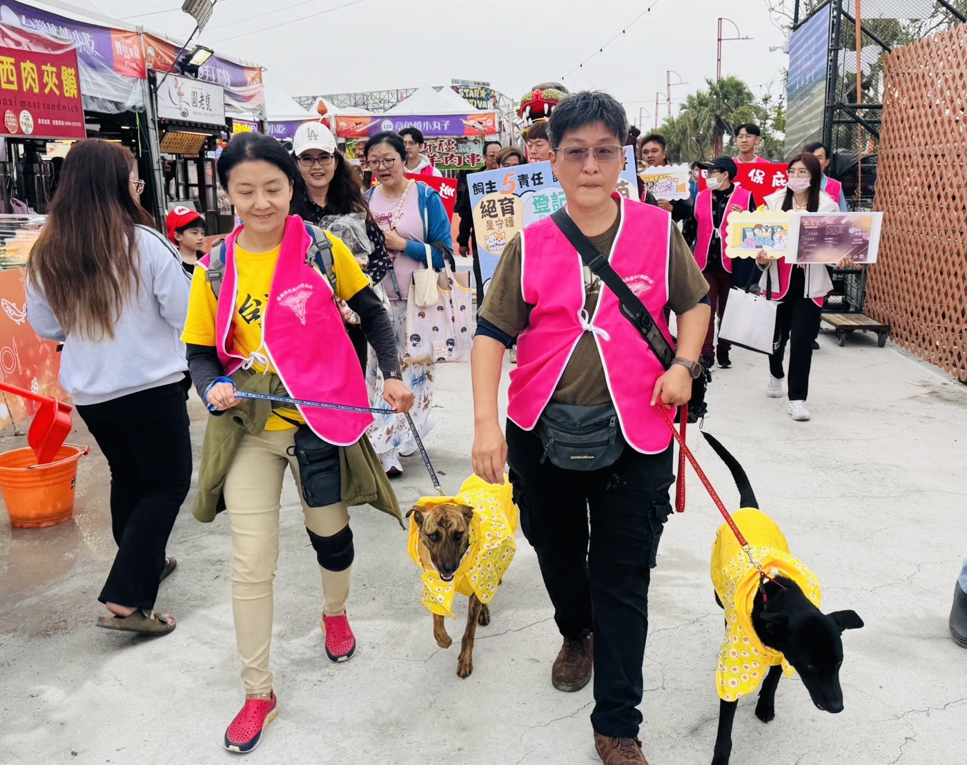 ↑圖說:2隻「浪浪就業服務站」訓練的療癒犬,曾經是無人問津的流浪犬,在經過耐心的訓練與照顧後,如今能自信地走在人群之中。(圖片來源:嘉義縣家畜所提供)