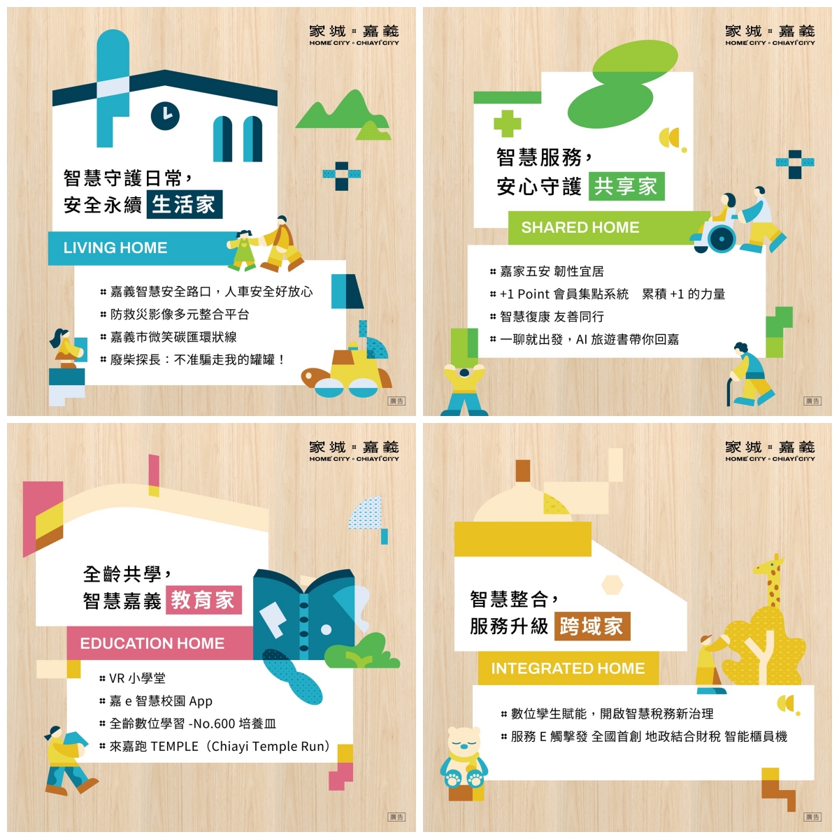 嘉義市政府表示,今年展館以「全齡共享、世代宜居」為城市願景核心,規劃「生活家」、「跨域家」、「共享家」與「教育家」四大主題展區,從生活、治理、服務到教育等不同面向,展現科技如何融入城市日常。透過「家城×嘉義」的概念,市府希望呈現一座以人為本、科技為輔的智慧城市,讓市民在日常生活中真切感受數位治理所帶來的便利與安全。