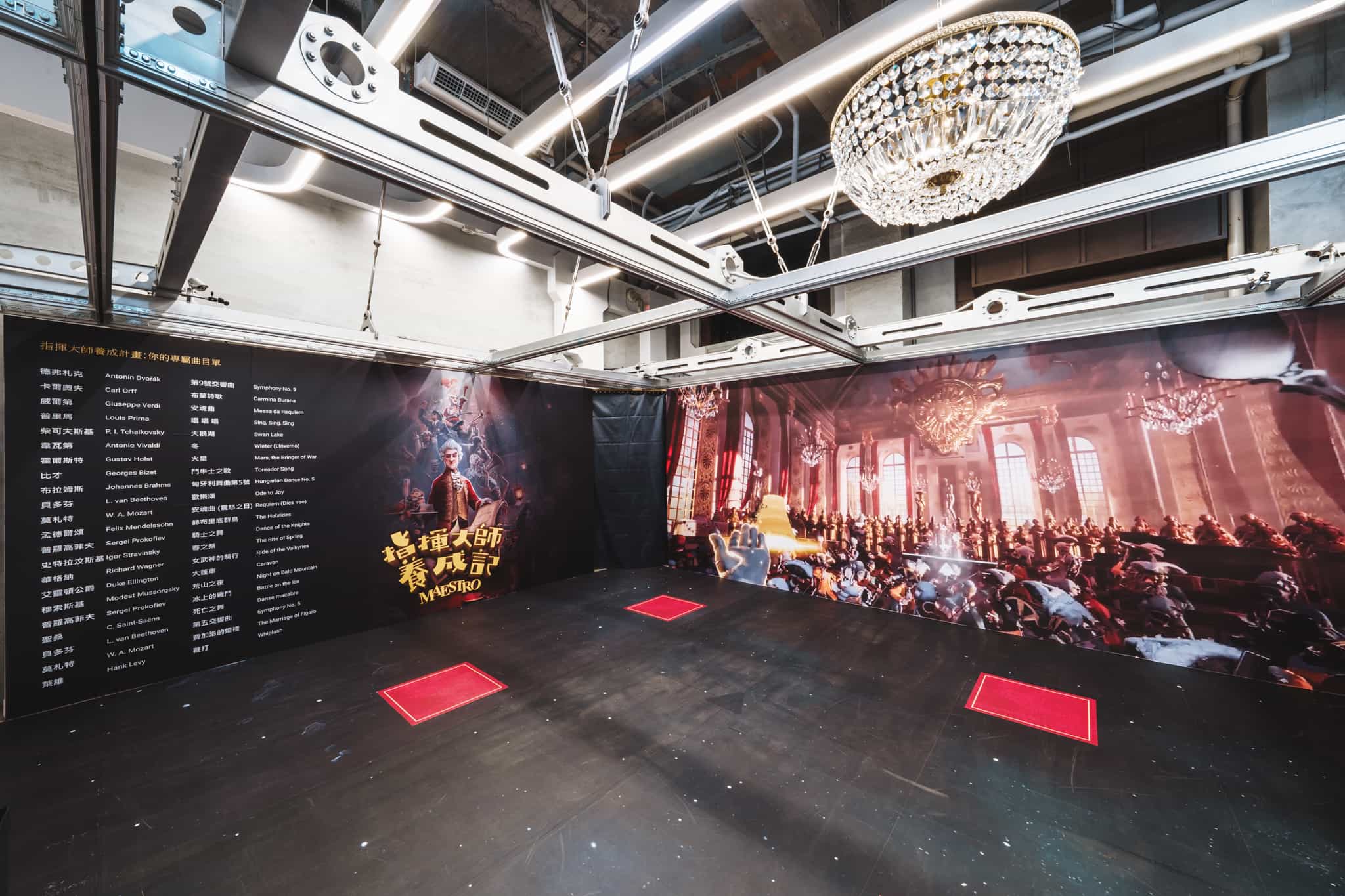 展覽期間,劇院也同步設置主題場景裝置,打造可拍照打卡的沉浸空間。《極限攀登》展區在劇院外牆展示約三公尺高的酋長岩畫面,並設置攀岩者等身人形看板,讓觀眾彷彿站在峭壁邊緣與傳奇同框;《指揮大師養成記》展區則打造第一人稱指揮視角拍照裝置,搭配水晶吊燈與古典樂元素佈置,營造宛如音樂廳舞台般的氛圍。