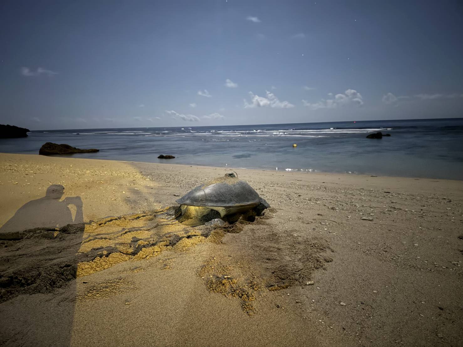 ↑圖說:TWOCA0605母龜完成第七次產卵後返回大海。(圖片來源:海洋保育署提供)