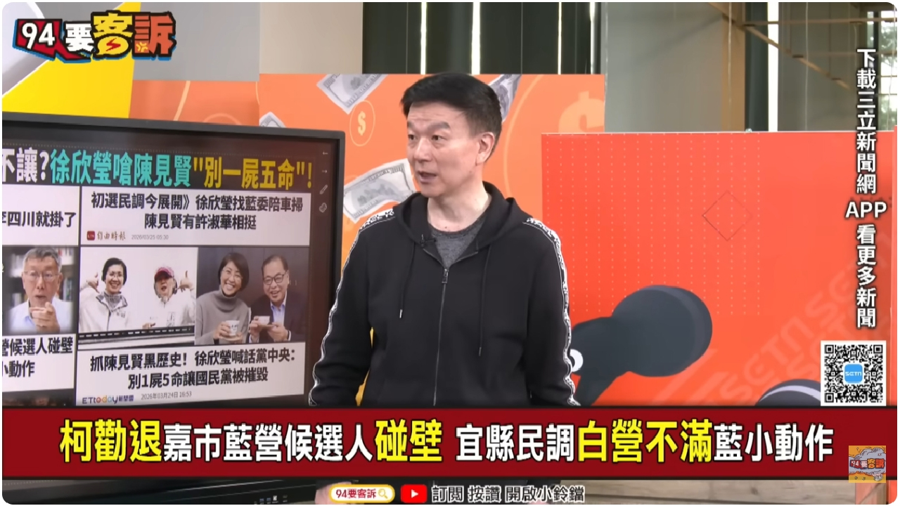 國民黨新竹縣長初選進入關鍵階段,桃園市議員于北辰25日在政論節目《94要客訴》中點出爭議核心,直言近期外界討論的新竹縣副縣長陳見賢「一清專案」黑歷史並非抹黑。于北辰同時分析選戰結構指出,國民黨另一參選人徐欣瑩在新竹具備一定政治能量,包括徐氏宗親會及宗教力量,還有科技新貴等支持,還當選過全國第一高票立委,具備跨族群動員能力。此次選戰對徐欣瑩而言,更被視為關鍵一役。