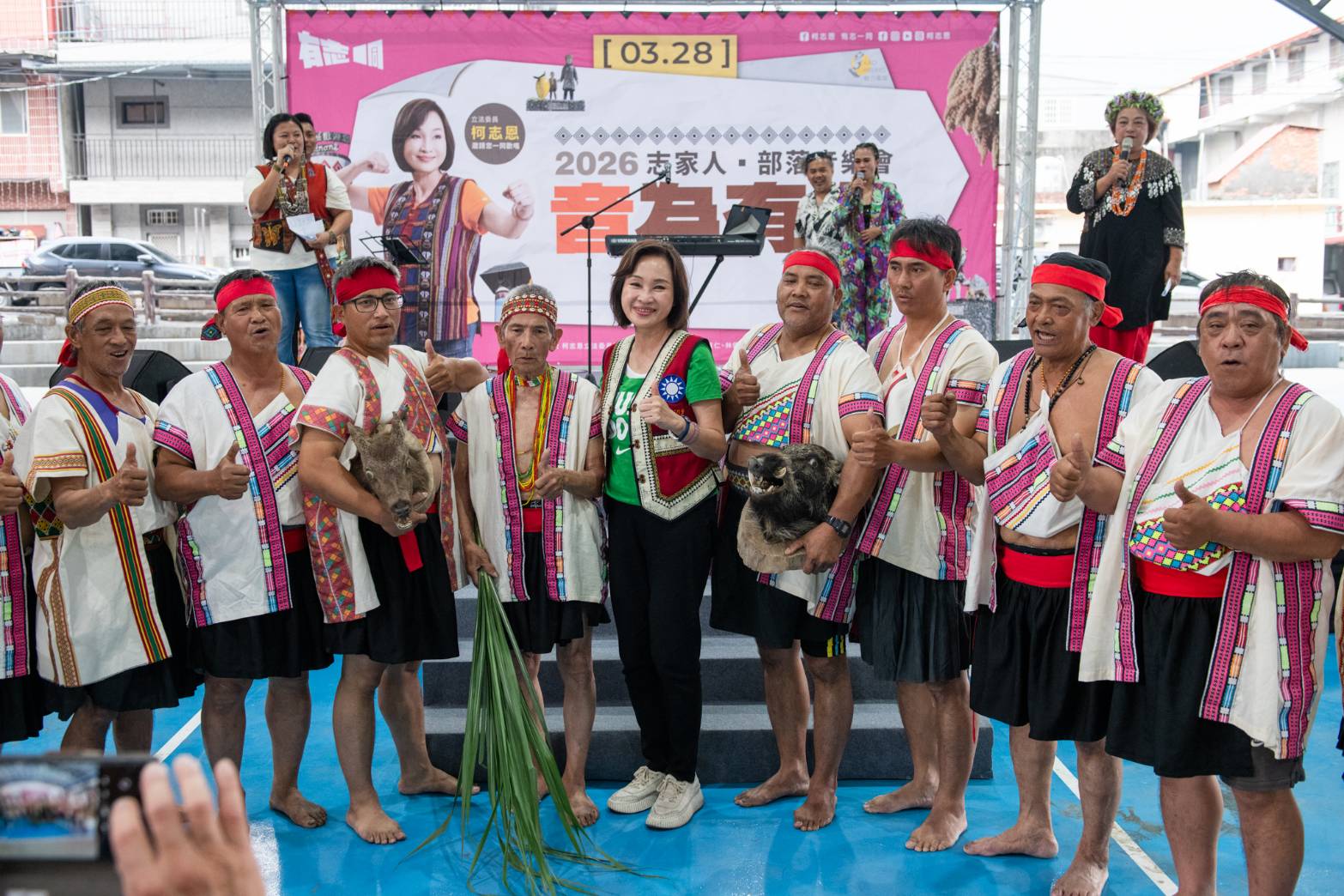 柯志恩28日深入高雄山區與城鎮,下午先後於桃源區雅你綜合運動場舉辦「志家人部落音樂會-音為有您」,晚間轉往旗山公共體育場出席「笑得真柯愛」兒童節活動,結合原民文化與親子互動,展現對在地族群與家庭議題的關注。