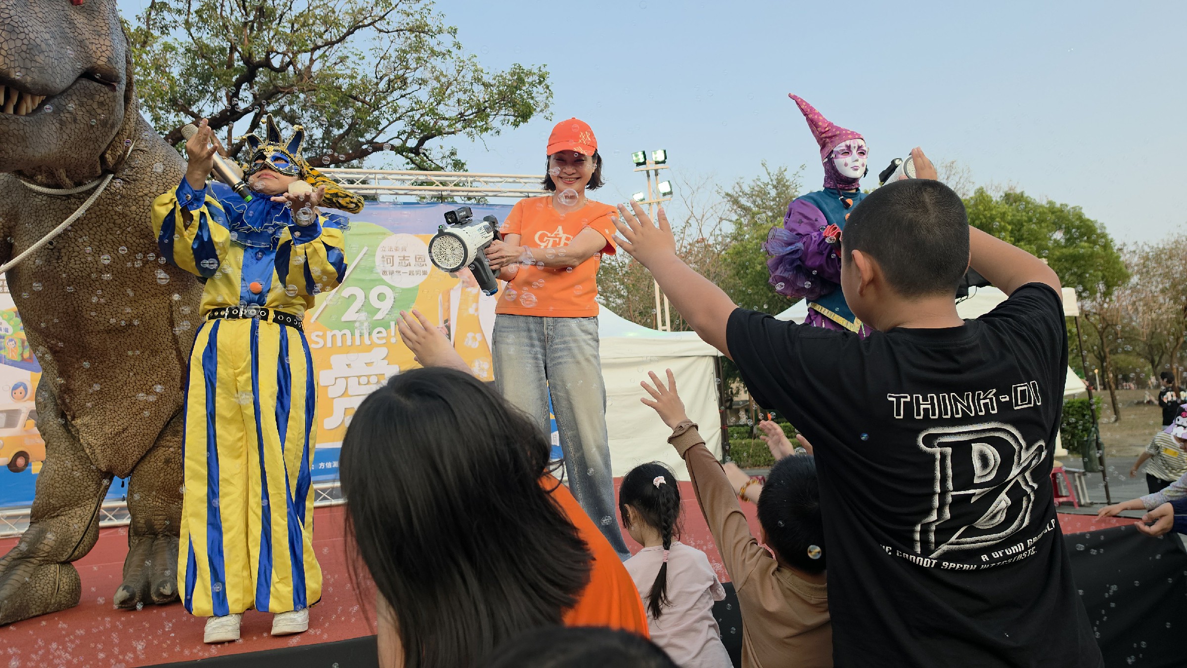 活動尾聲,柯志恩與在場民代一同登台,與MOMO家族帶領現場大小朋友唱跳互動,氣氛熱絡,也為活動畫下歡樂句點。