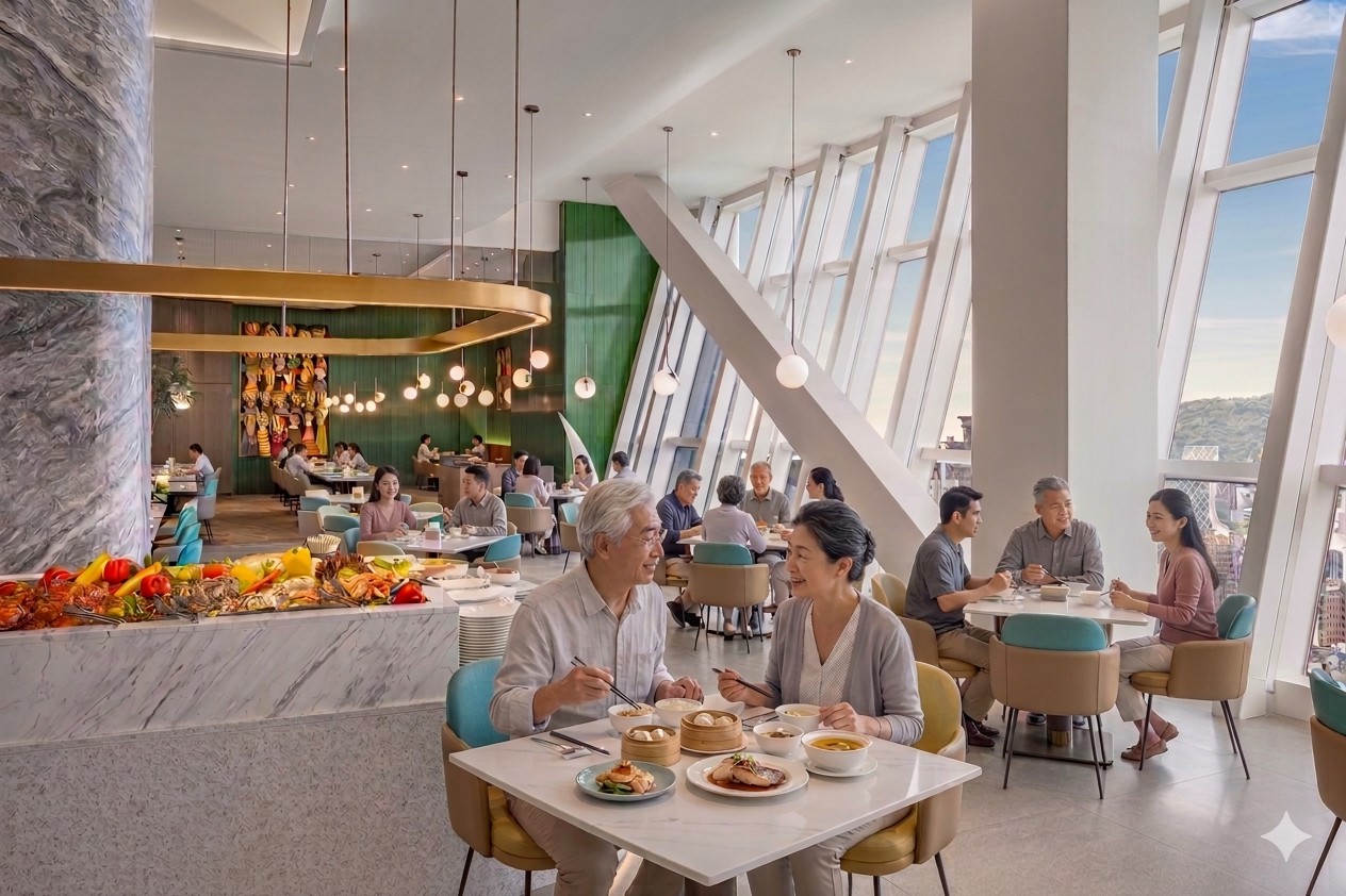 除親子客群外,承億酒店亦鎖定樂齡市場,自4月1日至6月30日於貳陸日全食推出「作夥來吃早午餐」專案,平日週一至週五早午餐時段,凡兩人同行且其中一人年滿60歲,即可享999元雙人優惠。業者表示,希望透過高空景觀與舒適用餐環境,提供長輩與親友放慢步調、輕鬆相聚的場域。