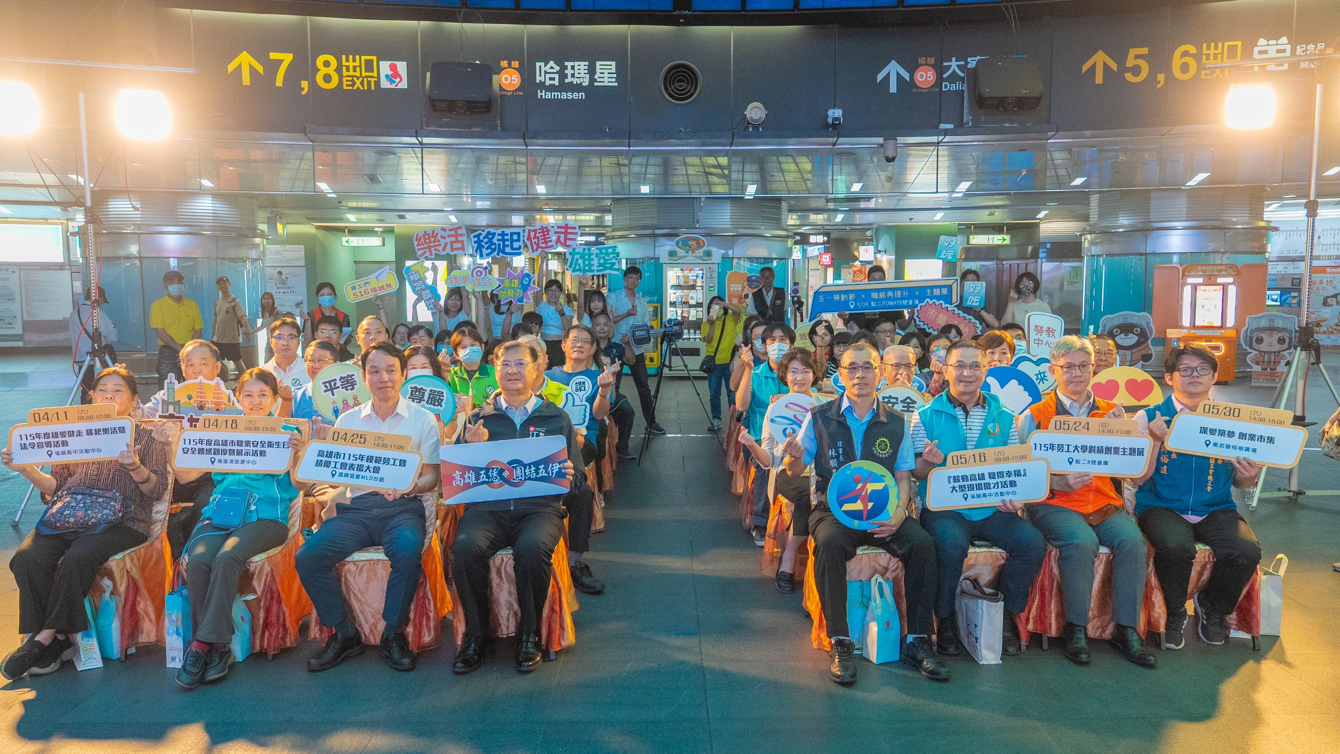 高雄市勞工局10日上午於美麗島捷運站光之穹頂舉辦「115年度五一勞動節系列活動啟動記者會」,為今年五一勞動節系列活動揭開序幕,展現高雄持續團結勞工、促進安全健康與勞動權益、活絡人才培育和就業、力挺弱勢族群、實踐平權城市及社會共好的決心。記者會上勞工局長江健興、高雄市各工會與各界貴賓共同啟動及見證,宣告活動正式開跑,勞動節系列活動將自4月11日起陸續展開,內容多元豐富,包括「雄愛健走、移起樂活暨法令宣導活動」、「職業安全衛生日安全體感觀摩暨展示活動」、「模範勞工暨績優工會表揚大會」、「薪動高雄、職得幸福—大型徵才活動」、「勞工大學斜槓創業主題展」及壓軸登場的「深愛築夢—創業市集活動」,敬邀勞工及市民朋友踴躍參與,一起響應年度盛事。