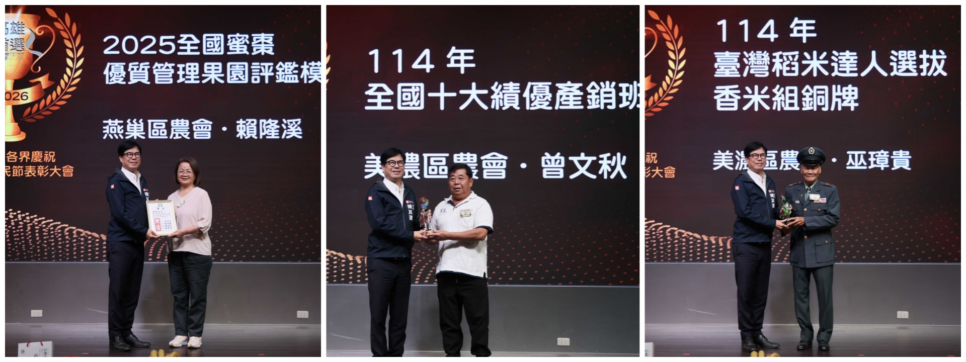 高雄市農會表示,今年表彰涵蓋優良農業團體、專業農民、農家婦女、青年農民及農業推廣教育績優人員,並新增原住民及新女力獎項,展現城市多元包容與性別平權精神,為農業發展注入更多新動能。