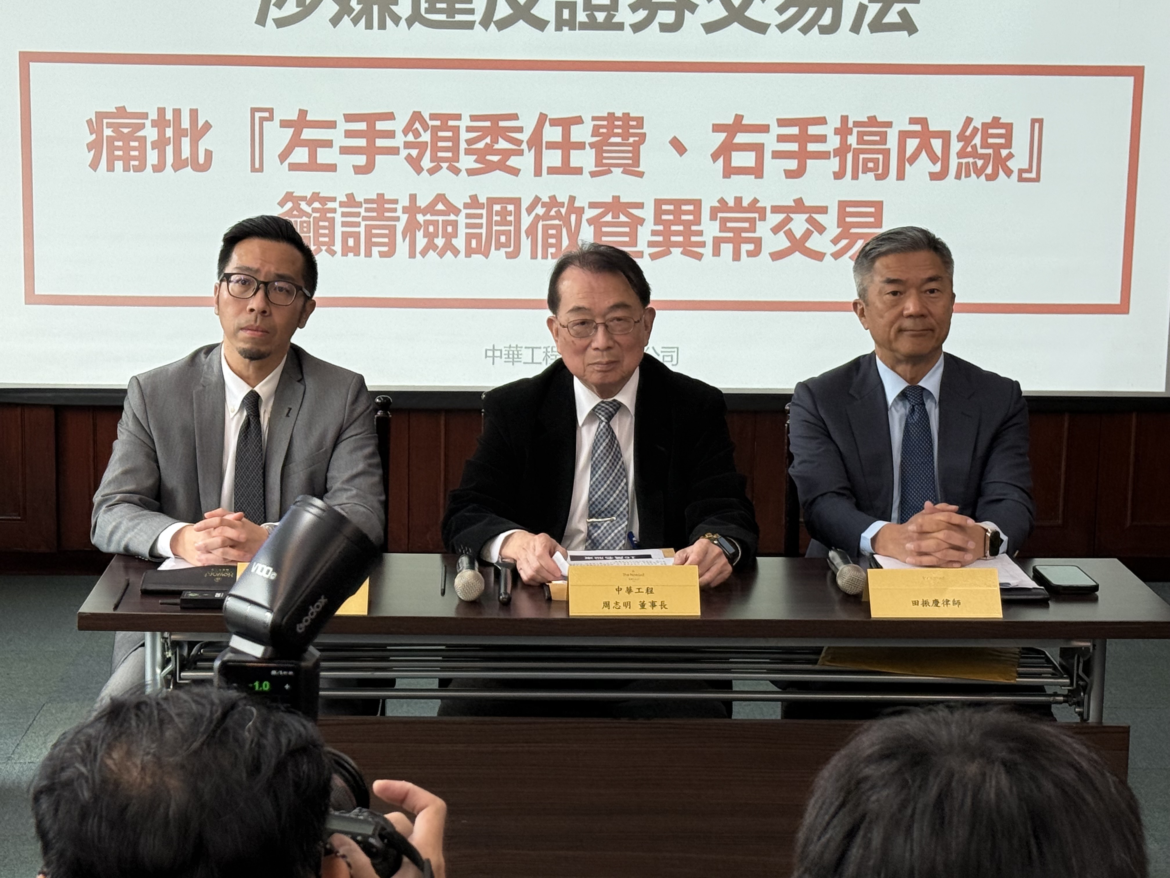 中華工程今日正式委請律師向檢調單位遞狀,對長龍、聯洲、全通等三家委託書通路業者,以及鉅業國際法律事務所林文鵬律師等相關人員,提出涉嫌違反《證券交易法》第157條之1(內線交易)及第155條(操縱股價)之刑事告發。