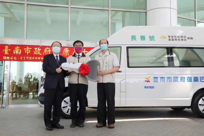 蔡宗勳表示,奇美開發建設、盛富開發建設秉持取之社會,用之社會的企業責任,響應南市府公私協力政策,希望能投入資源為社會關懷盡一份心力,在得知台南市溪南地區尚有老舊復康巴士待汰換,特別聯繫社會局表達捐贈意願。
