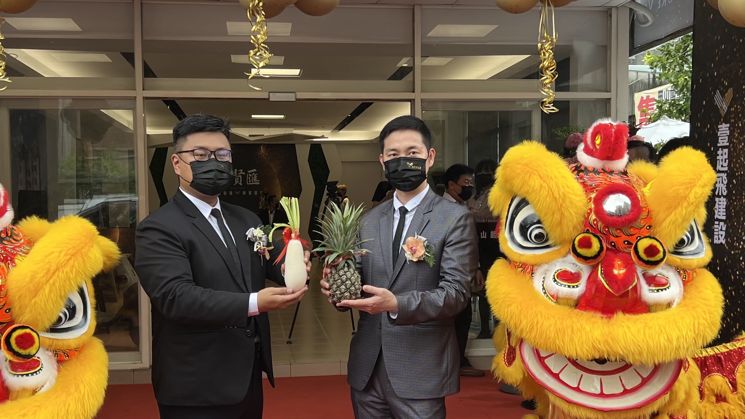 圖說:壹起飛建設董事長陳冠霖(右)和執行長蔡宗叡(左)舉行預售案「聚賢匯」新案公開儀式。(記者張雅雲攝)