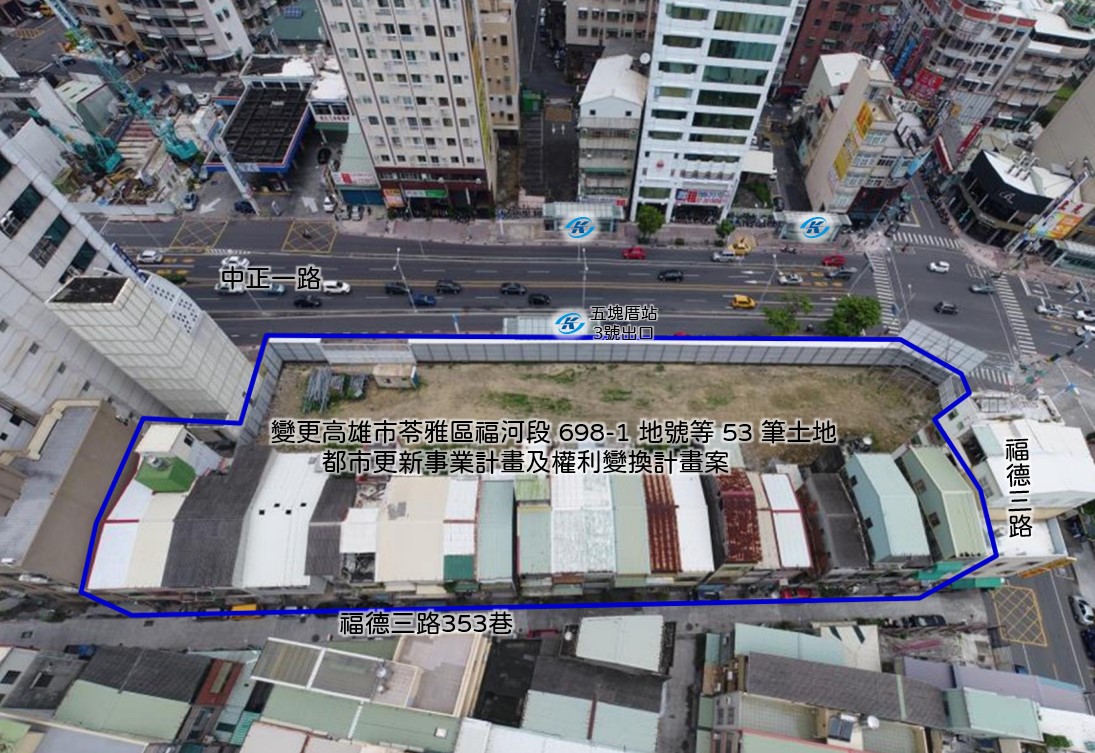 高市都發局表示,本案經變更後,更新單元面積約1335坪,北側屬第5種商業區、南側屬第4種住宅區,經私有地主及合法建物所有權人百分之百同意實施都市更新事業,將興建地上33層大樓,計479戶。