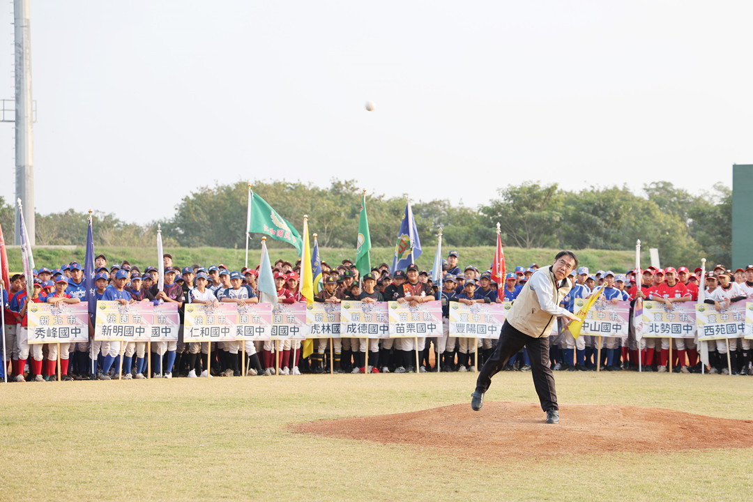 ↑圖說:台南市長黃偉哲為巨人盃開球 (圖片來源:台南市政府提供)
