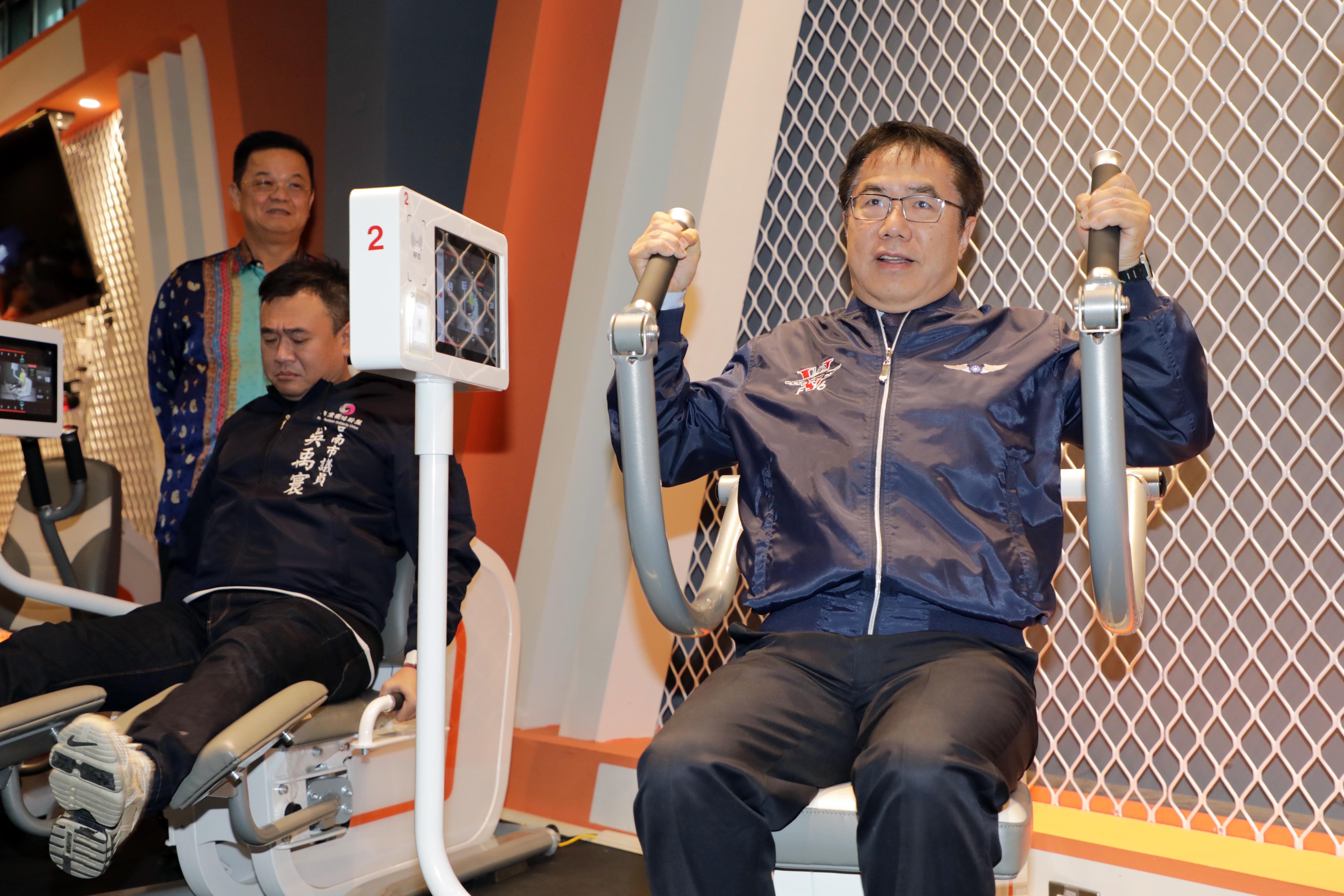↑圖說:台南市長黃偉哲體驗歸仁運動中心健身器材(圖片來源:台南市政府提供)