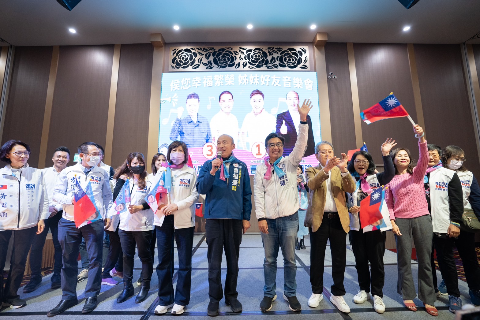 ↑圖說:韓國瑜3日力挺子弟兵曹桓榮,陪同車掃並出席了其所主辦的「姊妹好友音樂會」。 (圖片來源:曹桓榮競總提供)