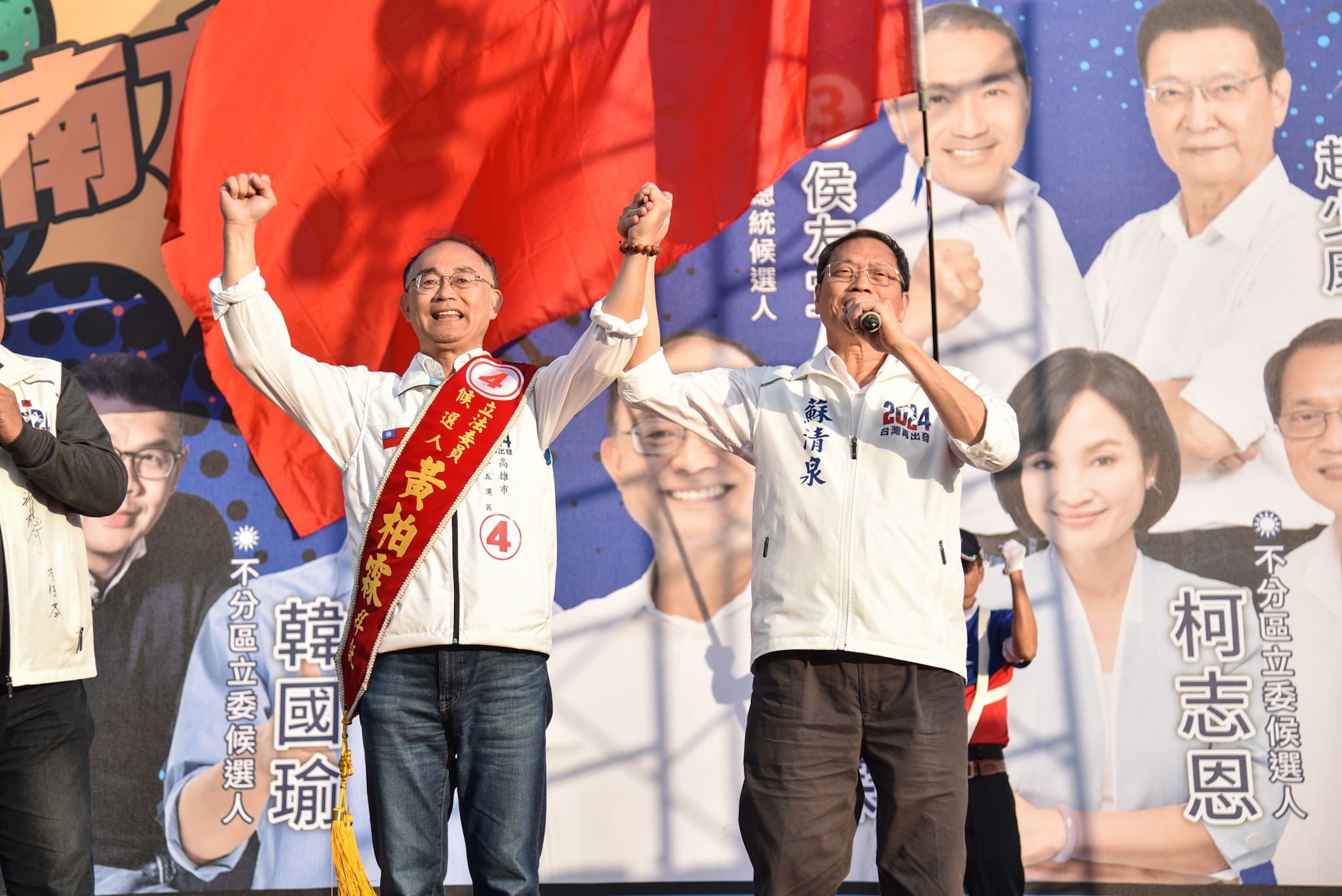 蘇清泉強調政黨要輪替、國會要過半,大家要挺黃柏霖,要一起到立法院當同事,因為立法院非常需要黃柏霖為教育跟公益發聲。最近中國大陸說石斑、龍膽、珍珠斑要恢復進出口,超過一百億的產值,這是我跟黃一成的功勞,大家都很開心,只有民進黨很痛苦。未來我們不只漁產,水果也要恢復。除了農漁產品恢復進出口,呼籲大家要出來投票、監票,要好好監督每一個投票所,不要讓憾事發生。