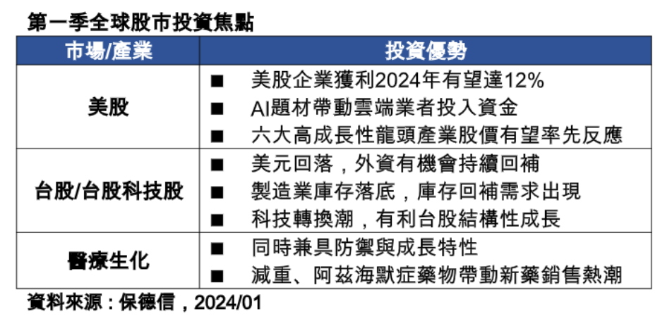 保德信Q1股市展望!美國成長、醫療生化、台股將受惠降息 留意這6大產業