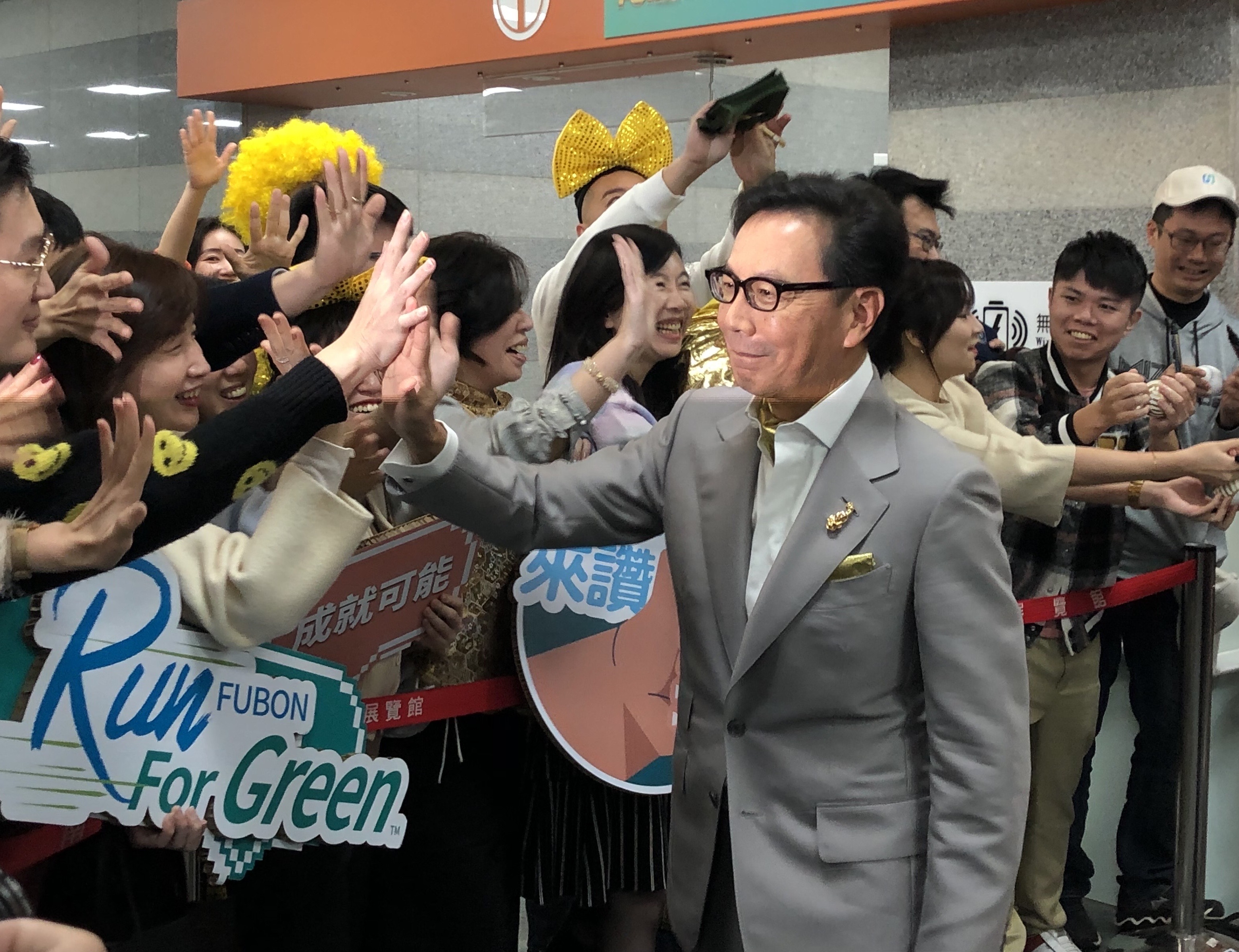 蔡明興受訪後,隨即與富邦集團董事長蔡明忠(如上圖,記者李錦奇攝影),一同進場參加謝年會,受到員工熱情歡迎。