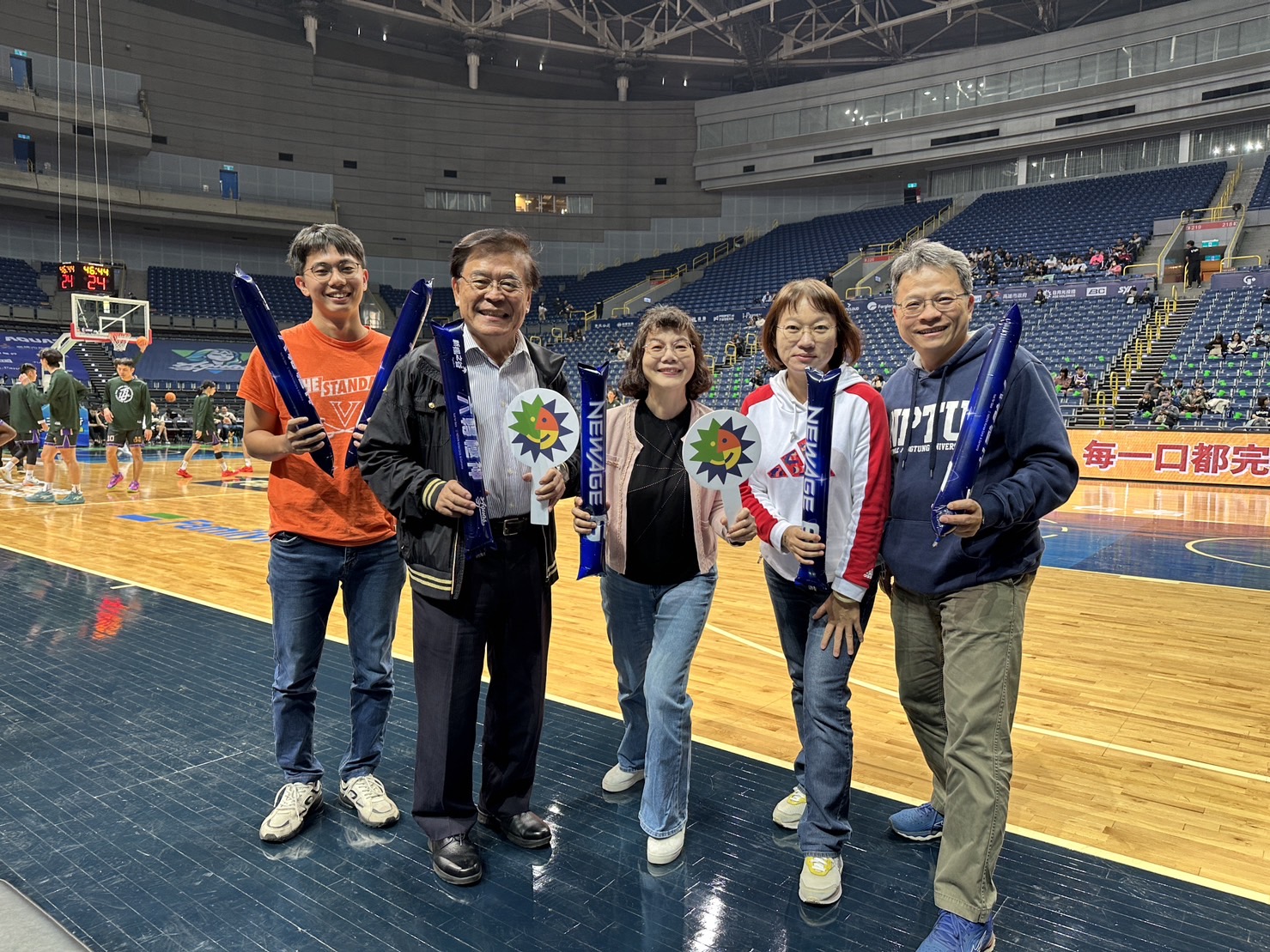 圖說:義守大學古源光校長(左二)、高雄大學陳月端校長(左三)、屏東大學陳永森校長(右一)一起蒞臨球賽現場,共襄盛舉(圖片來源:日月光提供)