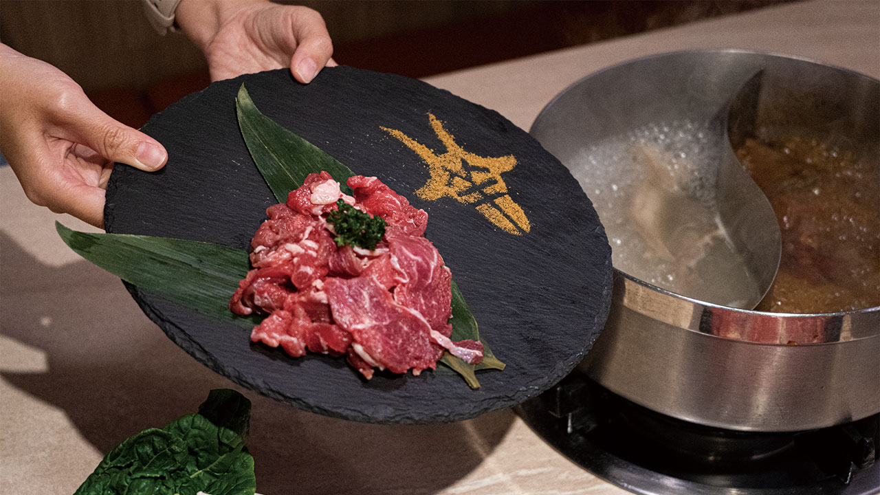 羊肉的擺盤也太可愛了!旁邊是用孜然粉撒成形狀,先將羊肉下鍋涮煮,吃起來口感軟軟嫩嫩,比我想像中還要香,比原湯的肉質更Q一些。