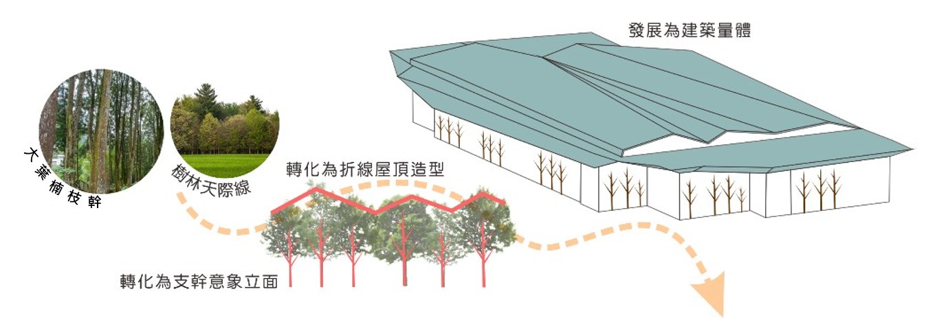 ↑圖說:楠仔坑運動中心設計上是以原有游泳池為中心,並以楠木為啟發,轉換為屋頂鋼構的設計元素(圖片來源:高雄市工務局提供)