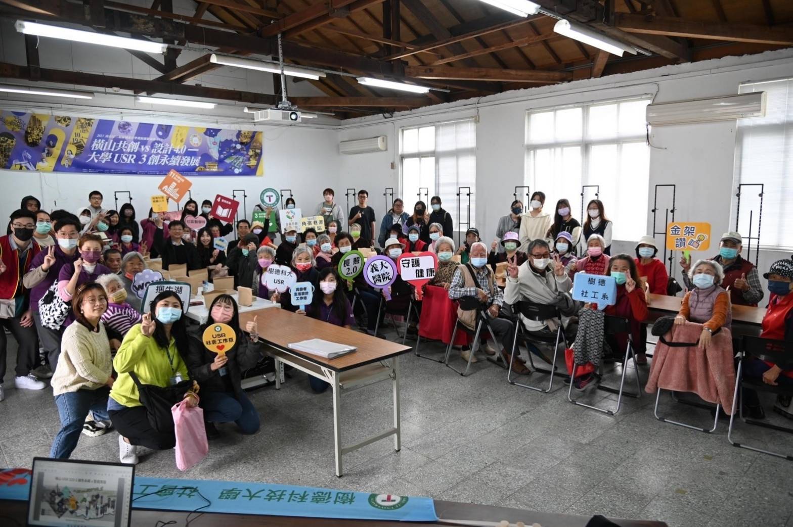 義大醫院「角宿巷弄長照站」、「捆牛湖巷弄長照站」很高興能邀請在地樹德科技大學老師與學生參與這次的義大醫院長照據點歲末年終感恩尾牙及銀青共學活動,義大醫院家庭暨社區醫學部劉依亭副部長表示,感謝兩個據點的長輩願意踏出家門到據點參加活動,讓我們可以提供預防及延緩失能、健康促進的服務,也感謝樹德科技大學提供那麼好的場地讓我們運用,並期望明年度社區醫學科能提供更多有趣多元的課程回饋鄉里。