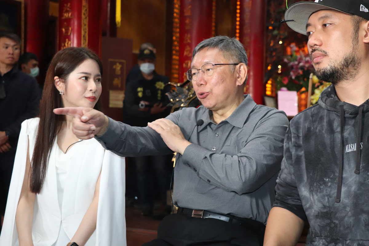 ↑圖說:柯文哲於中洲寮保安宮談國政理念 (圖片來源:記者謝欣澤拍攝)