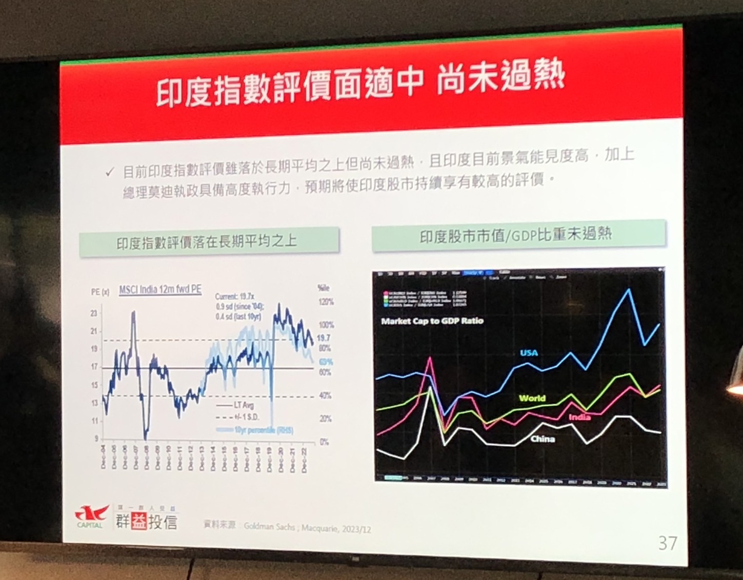 中租基金平台總經理蘇皓毅也指出,印度2024年面臨國家領導人大選,潛伏政治不確定性風險,但印度總理莫迪及印度人民黨(BJP)將尋求連任,目前市場預測莫迪勝選機率極高,莫迪也給出承諾,印度將在他的第三任任期內「超德趕日」,成為世界第三大經濟體,印度中長期投資的利多已開始發酵。