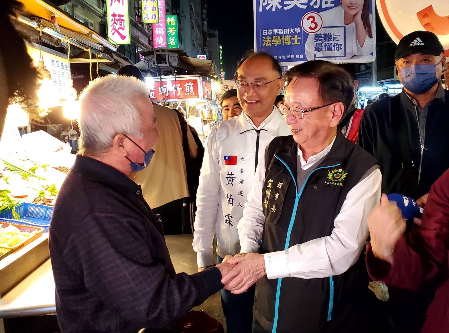 ↑圖說:宣明智(右二)陪同黃柏霖掃夜市。(圖片來源:黃柏霖競總提供)