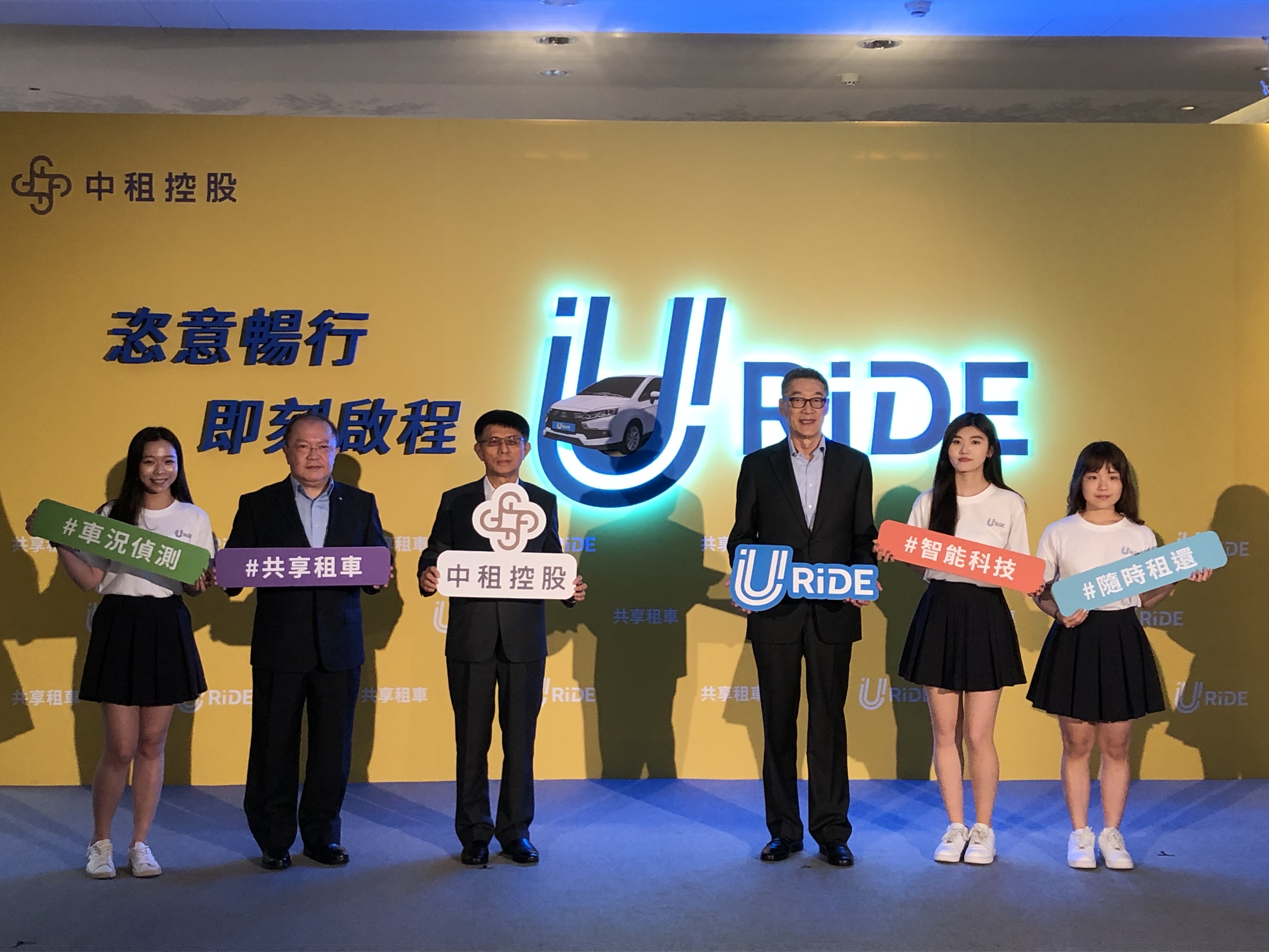 去(2023)年設立仲行智能行動公司,推出「URiDE」共享租車品牌,並於今天舉行記者會,中租控股董事長陳鳳龍(下圖左三,記者李錦奇攝影)致詞時表示,消費者15分鐘就能完成租車,彈性計價,消費者還能累積里程數,換禮物;對企業來說,共享租車也不需投資設備,都是誘因。