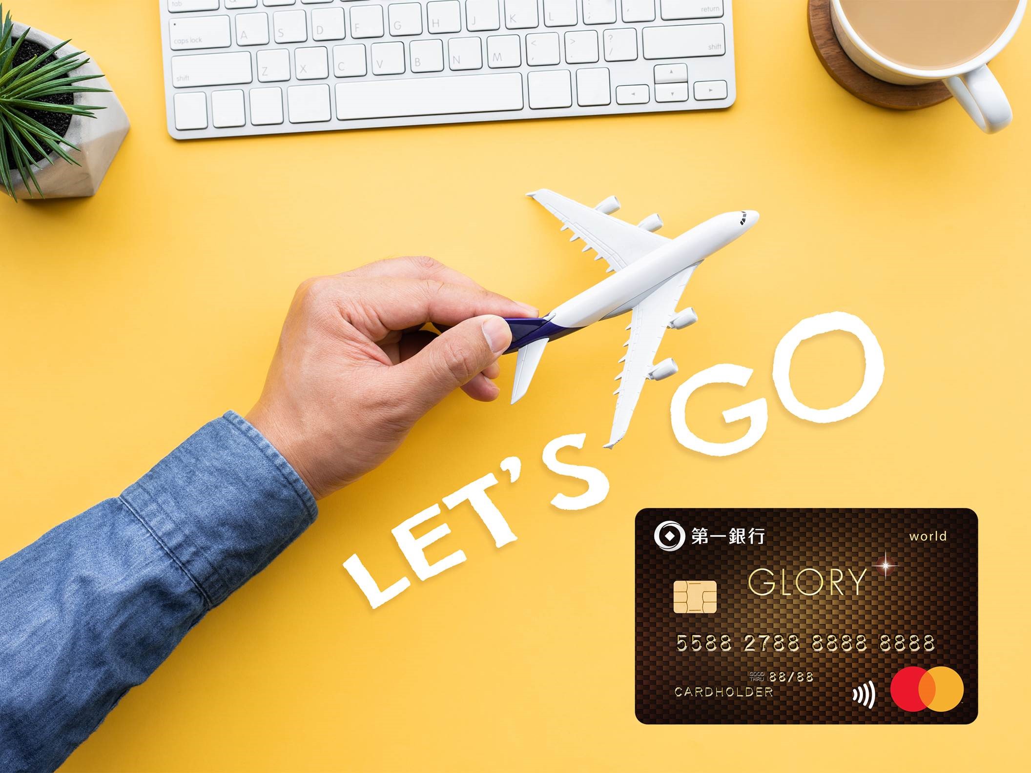 此外,瞄準高端富裕客群,第一銀行GLORY+世界卡(如上圖,一銀提供),提供商務差旅刷團費或機票,享5000萬元公共運輸工具期間旅平險與30天1000萬元海外全程旅行平安保障,一年最高6次國際機場接送及10次免費機場貴賓室服務,憑卡至分行再享臨櫃結匯減碼優惠。
