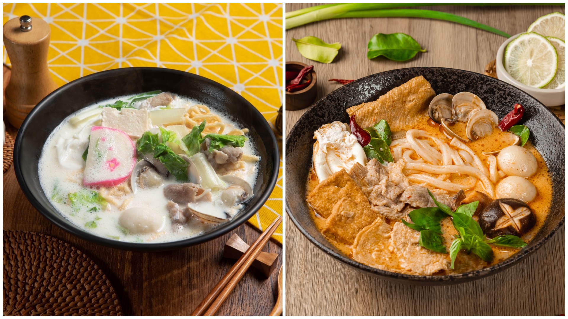 ↑圖說:牛奶鍋燒意麵與南洋叻沙鍋燒烏龍(圖片來源:高雄市觀光局提供)