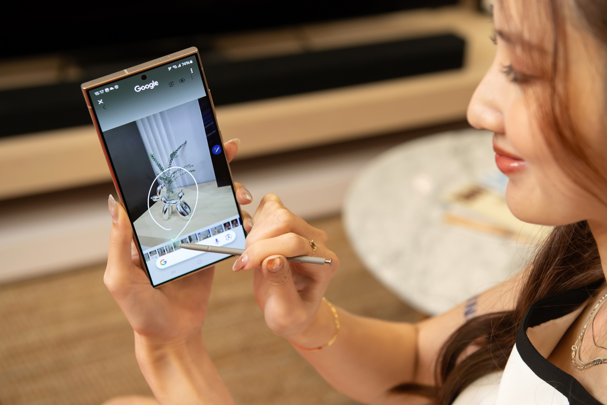 三星電子今日發表最新旗艦手機Galaxy S24 Ultra、Galaxy S24+與Galaxy S24新機,透過AI人工智慧,強化全方位體驗,提供「通話即時翻譯」、「筆記智慧助理」、「語音轉文字智慧助理」,並且攜手Google推出「搜尋圈」功能,用戶如果在手機看到有趣的照片或內容,可以圈選、標示,Google就會幫你快速搜尋(如下圖,三星提供)。