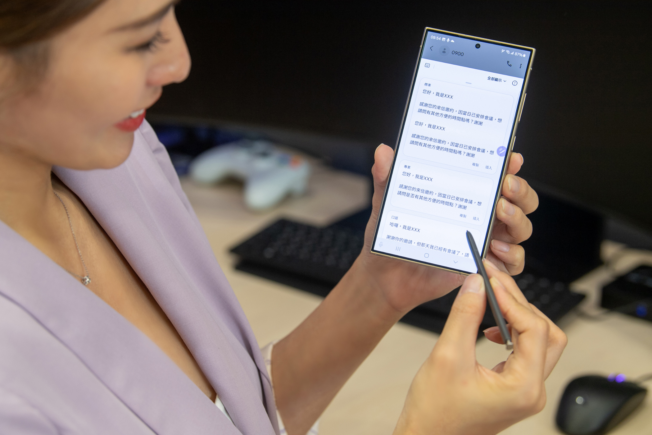 ▼圖說:「寫作助理」根據對話情境提供回覆語句建議 (圖/三星提供)