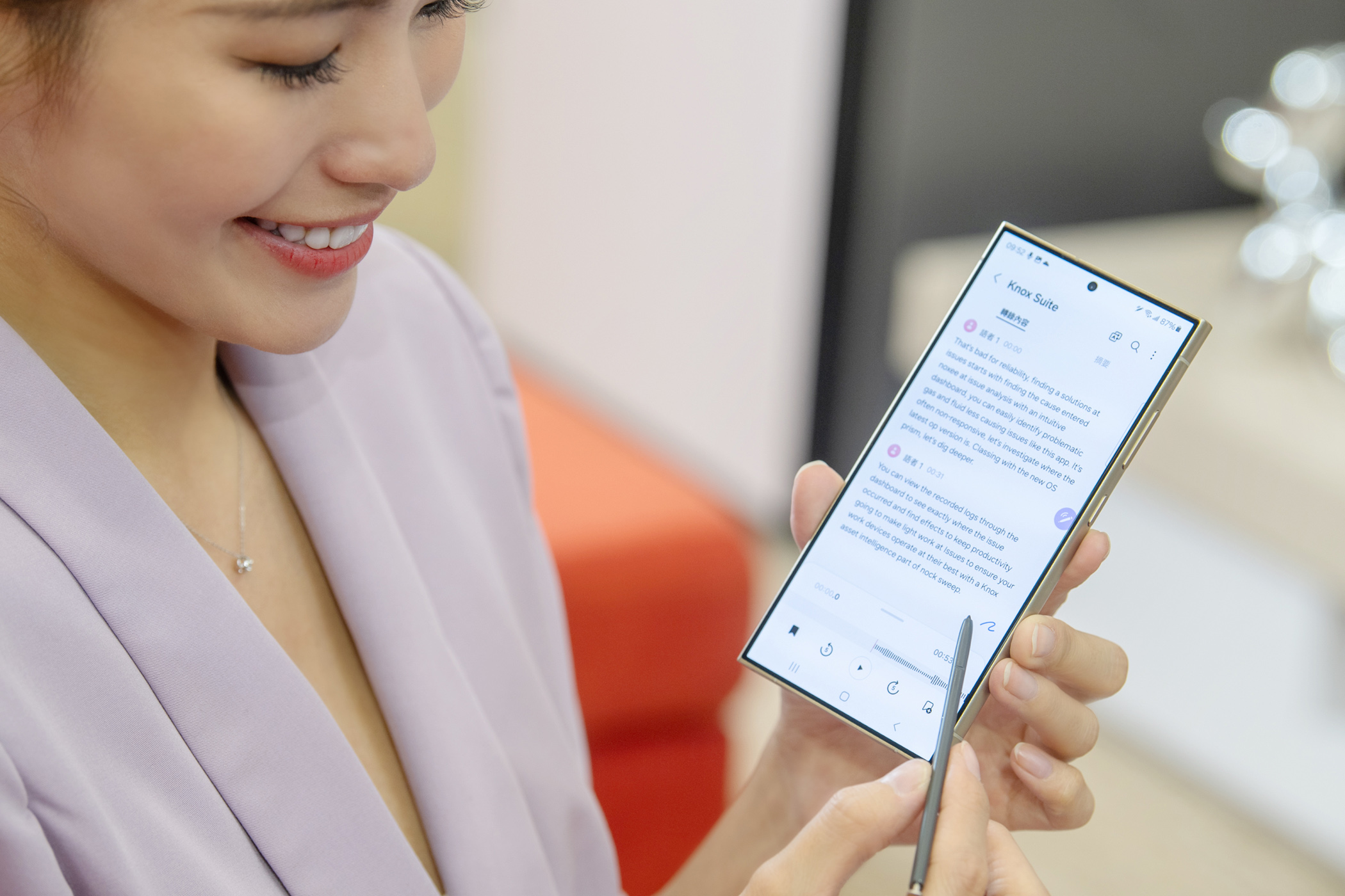 Galaxy S24 Ultra採用鈦金屬邊框,搭載 6.8 吋螢幕,擁有4鏡頭,其中主鏡頭高達2億畫素,前置鏡頭1200萬畫素,並內嵌S Pen,方便隨時筆記、作畫。