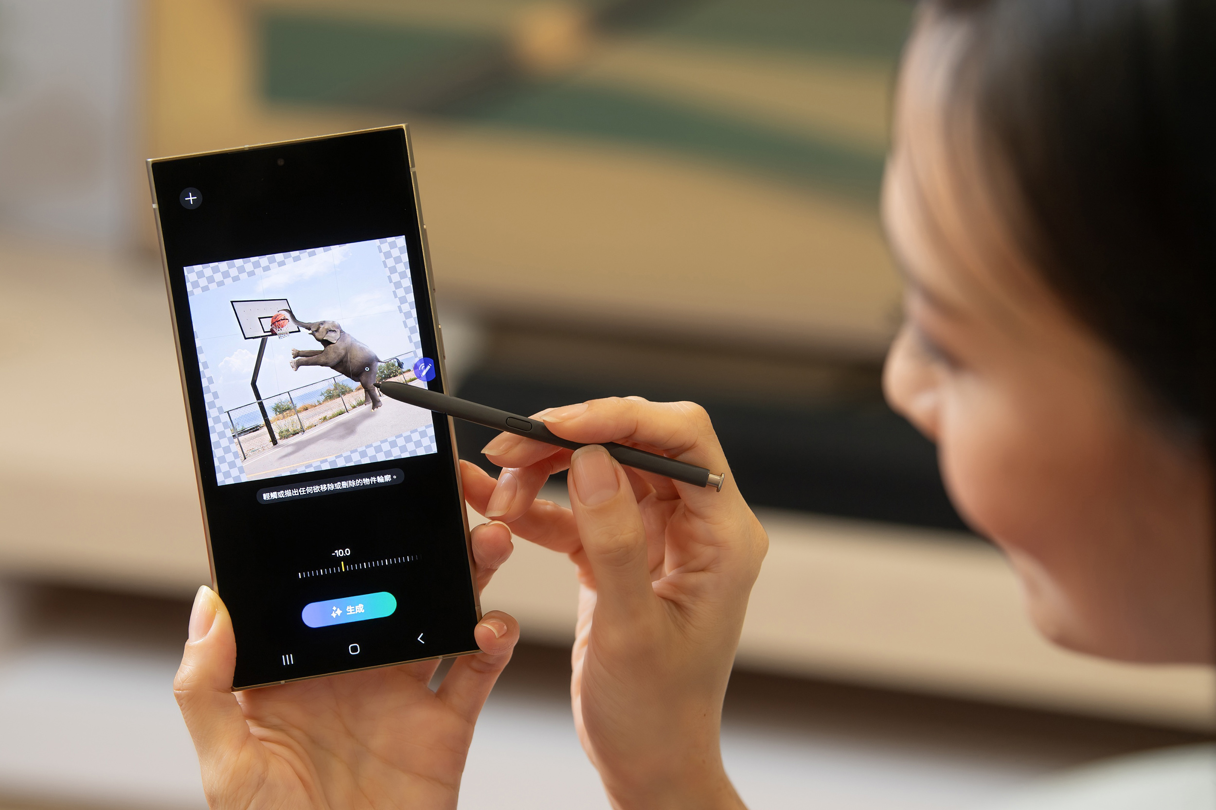此外,生成式相片編輯(Generative Edit) 還能透過生成式AI填補影像背景。調正歪斜的照片後,AI能填補邊緣缺口;若畫面中的物體需微調位置以獲得完美構圖,AI能讓用戶移動被攝主體的位置,移除主體後的空白處,則以完美融合的背景填補(如下圖,三星提供)。