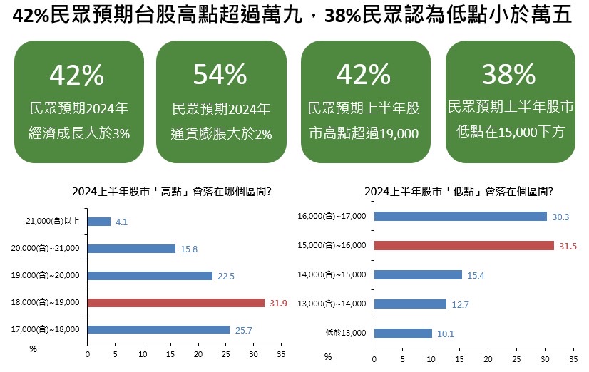 ● 42%民眾預期2024年經濟成長率在3%以上,54%民眾預期通膨仍高於2%: