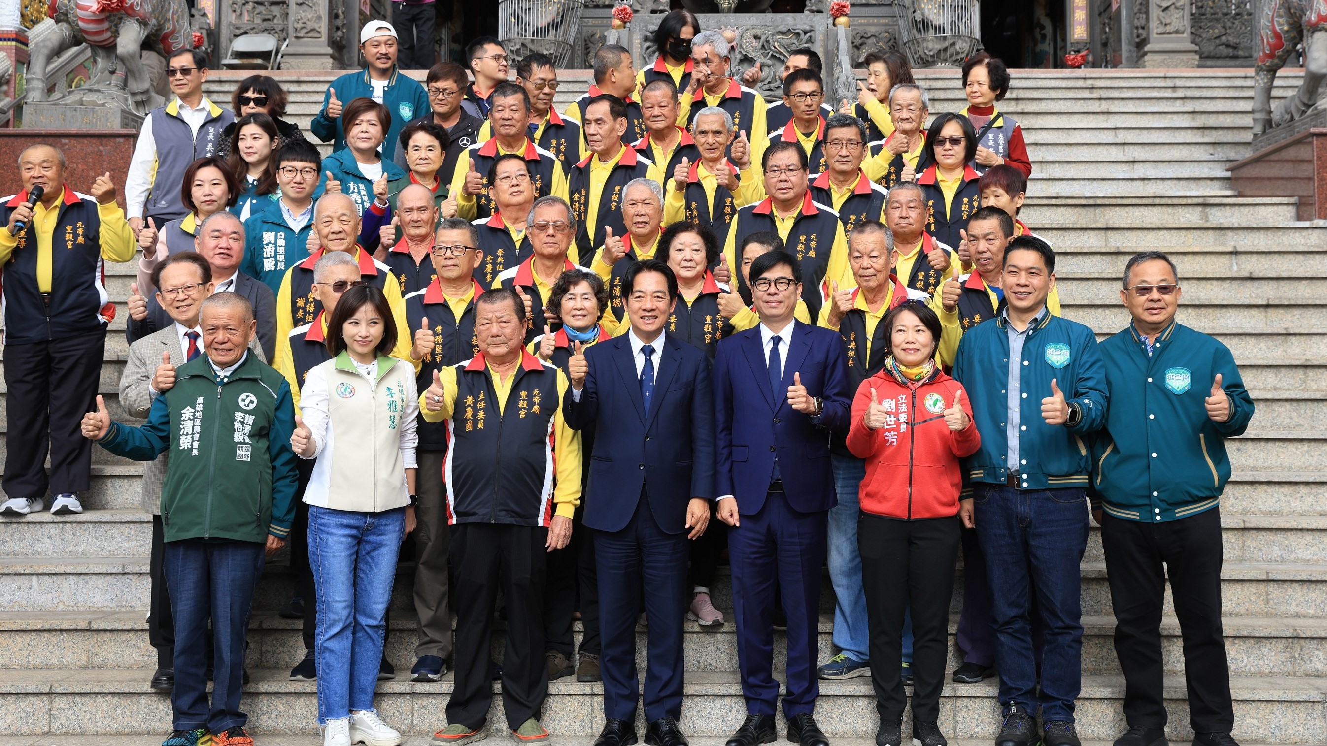 賴清德在高雄第3站走訪鳳山雙慈殿參香後致詞表示,我們是一個團隊台灣隊,非常感謝大家支持,如同支持者高舉的海報「世界的挑戰正是台灣的機會」一樣,4年任期會有很多困難,一定會勇敢面對。未來如果政府有做不好的地方一定要反映,不管是找立委、市府、議員、里長;台灣隊不因選舉結束而解散,平時也要為台灣認真打拚。