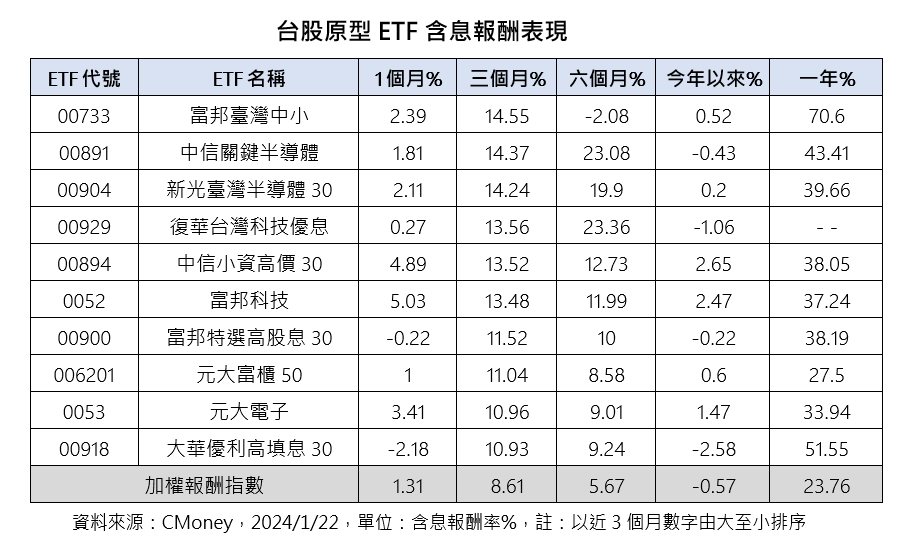 近3個月來,半導體ETF績效表現搶眼,包括新光臺灣半導體30 (00904)、中信關鍵半導體(00891) 、富邦臺灣中小ETF (00733)含息報酬率均超過14%。