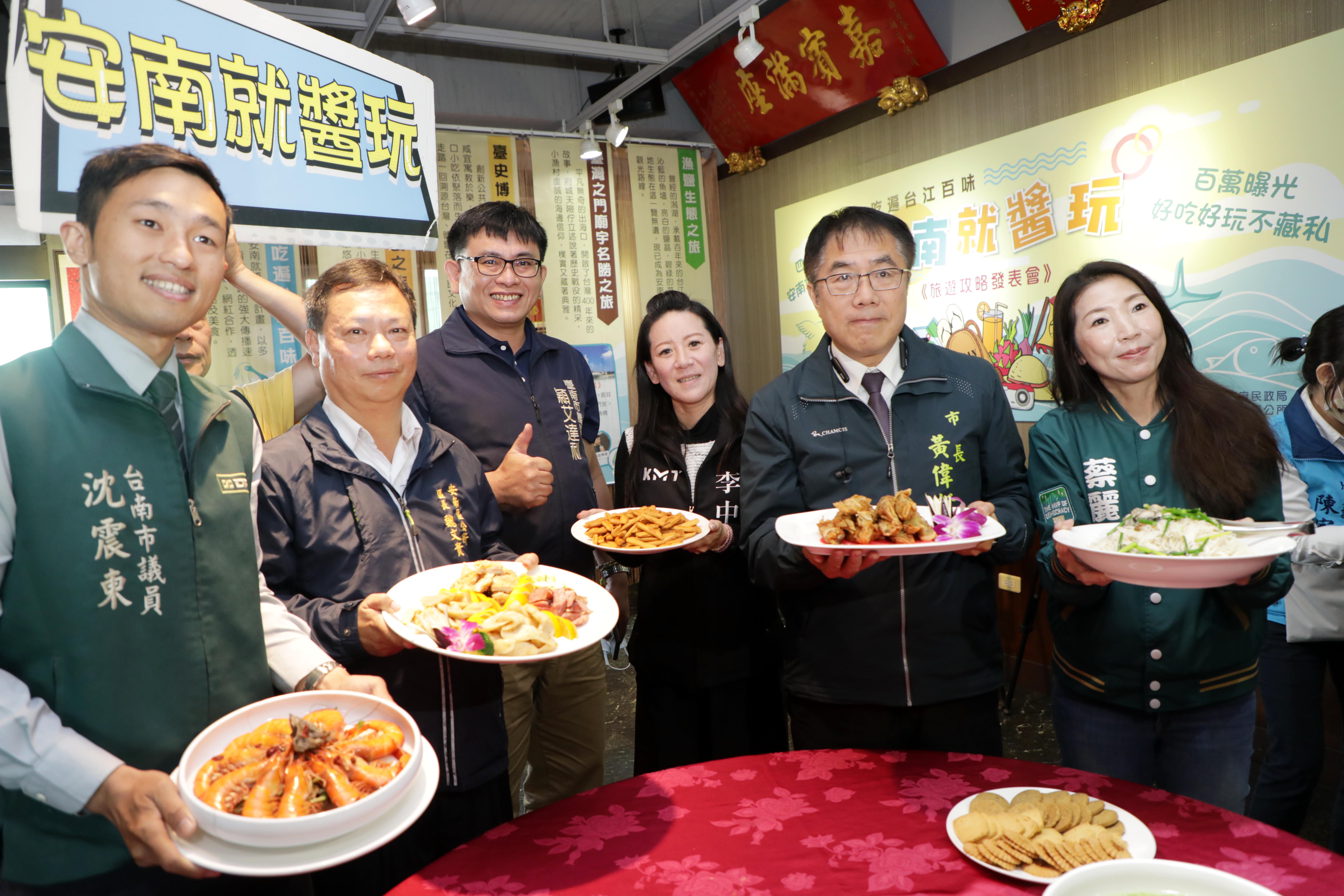 安南就醬玩旅遊攻略發表會邀請知名旅遊作家「阿春爸」介紹4條旅遊路線攻略,以及部落客推薦必吃美食;會場也由愛心總舖師蔡瑞成操刀,以海味十足的台江農特產烹煮傳統台菜,包括西瓜綿虱目魚湯、蚵仔麵線、虱目魚五柳枝、烏龍茶香蝦、蛤蠣絲瓜;以及銅板美食小吃,煙腸枝、美味炸雞、50年老店水河伯豆花、雪山貓的阿里山咖啡、秉醇烘焙坊的點心等。