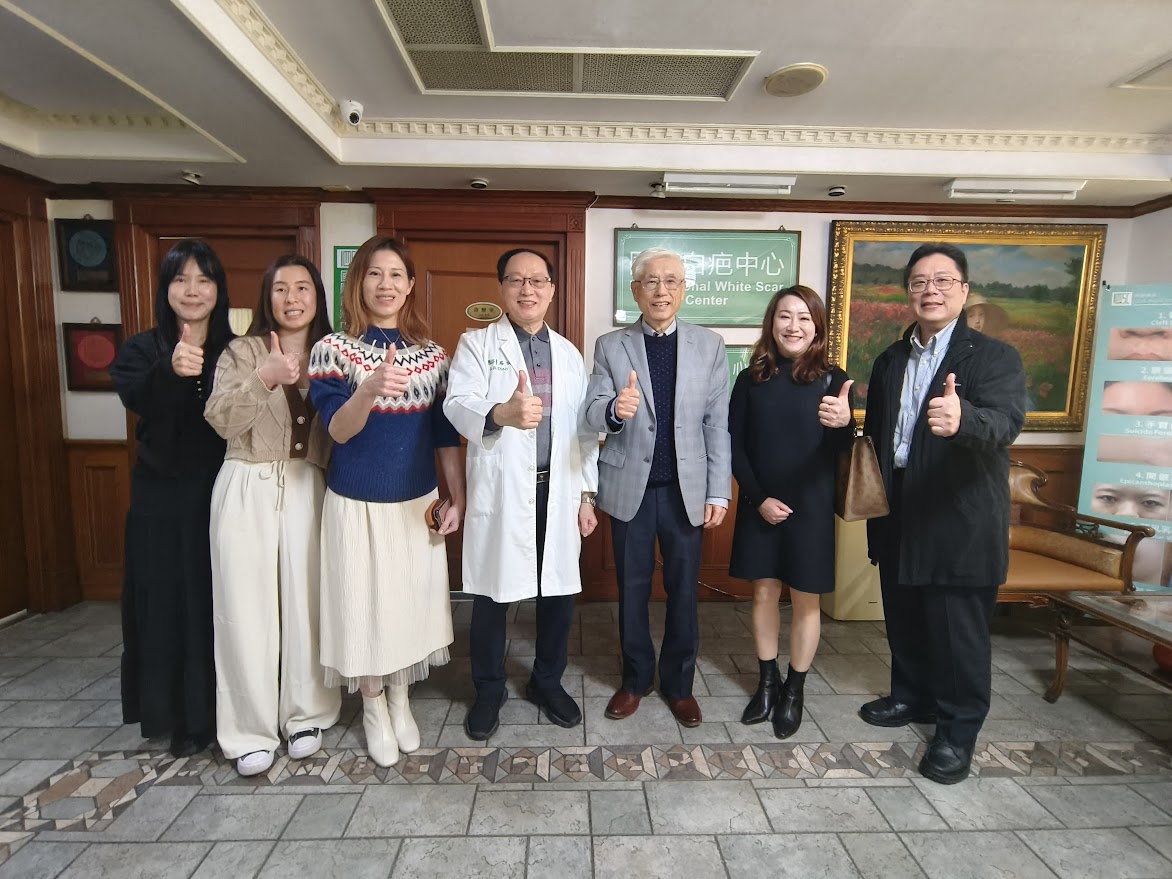 艾萬霖生技創辦人林奏延率領公司團隊、亞太聯發生醫有限公司總經理沈珮如等一行,拜訪曹賜斌整形外科診所,由國際白疤中心企劃長陳青簡報介紹該中心特色、宗旨及標竿,雙方熱烈溝通後,認為可透過「外泌體」再生醫療的特質,結合白疤顏色再生術,提高白疤細胞存活率及醫療治癒率,未來再經臨床驗證後,將可發表於國際期刊成為進階版白疤論文,嘉惠全球白疤患者。