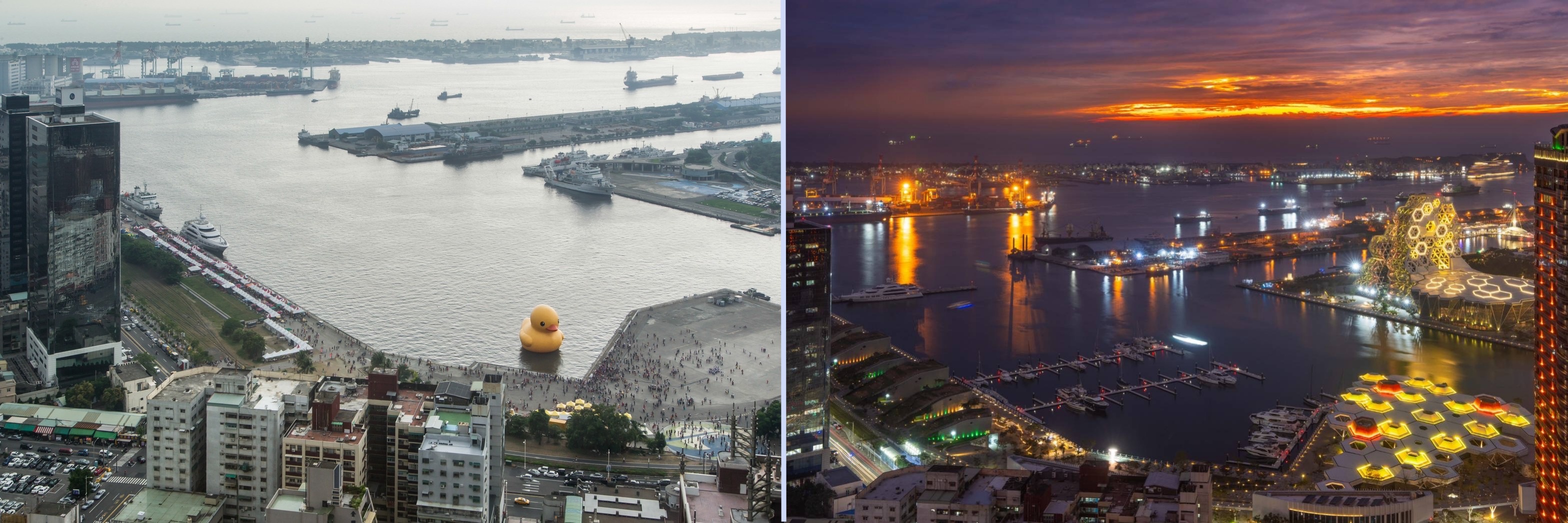 在黃色小鴨正式重返登場之前,市民朋友們最近紛紛翻出10年前小鴨在愛河灣的照片,並且發現當年的光榮碼頭周邊,現在已經「長」出高雄流行音樂中心、高雄港旅運中心,連16~21號碼頭也都拆除圍籬後淨空,讓市民朋友們有更大範圍親近港灣的空間,再加上輕軌捷運的貫穿連接,高雄港與愛河灣已經成為港都最閃耀的一串明珠。