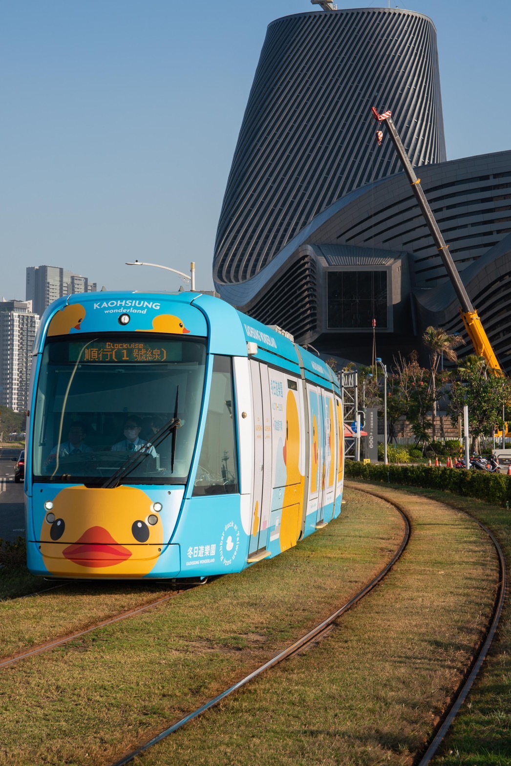 ↑圖說:2024年輕軌成圓,黃色小鴨列車行經高雄景點(圖片來源:高雄市政府提供)